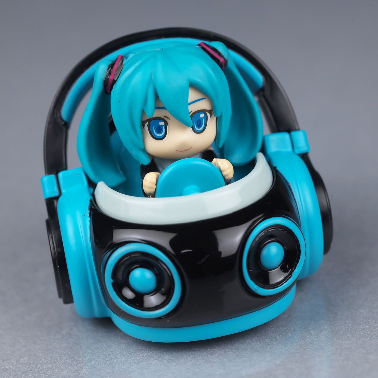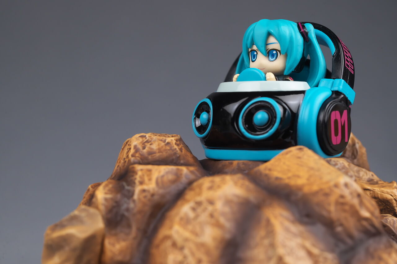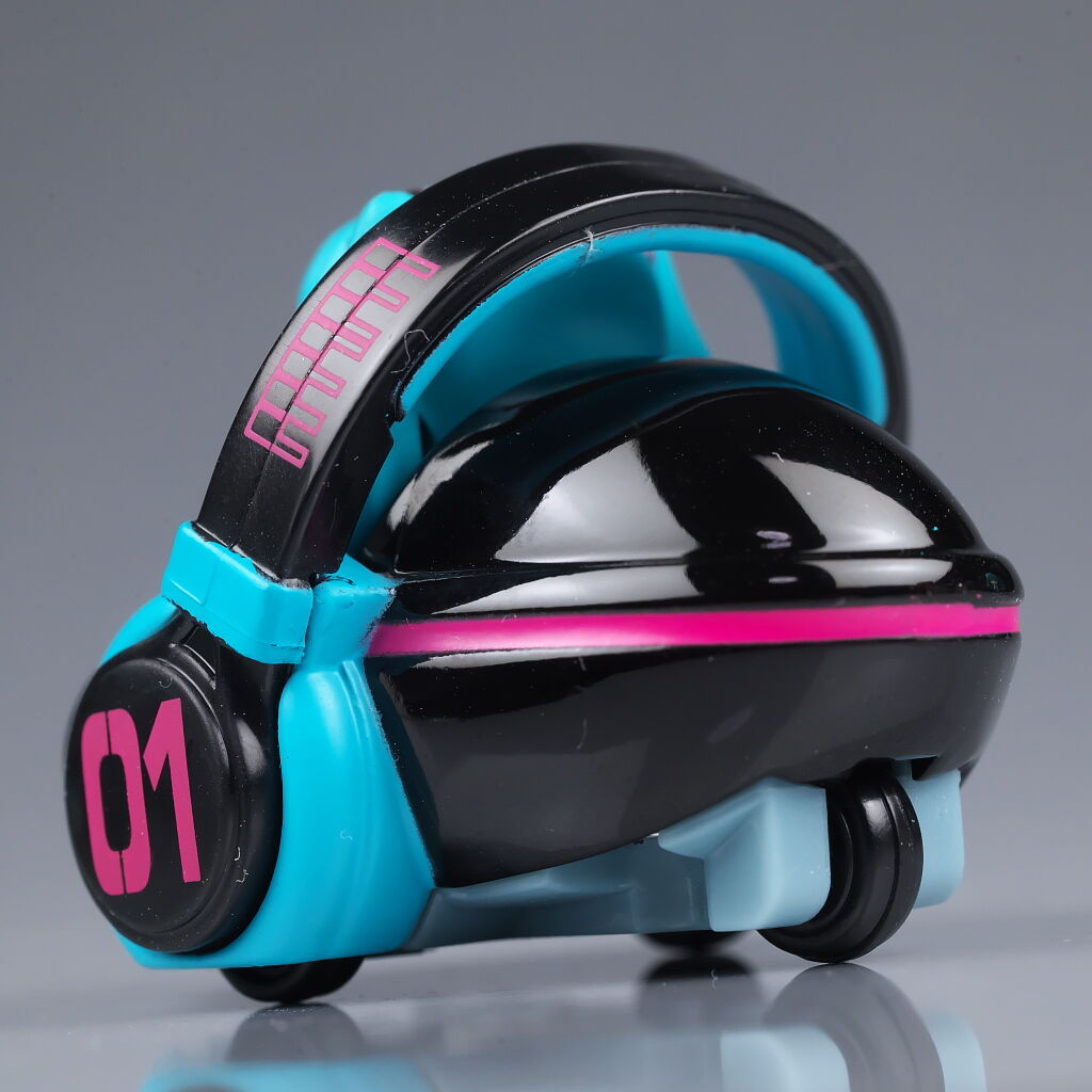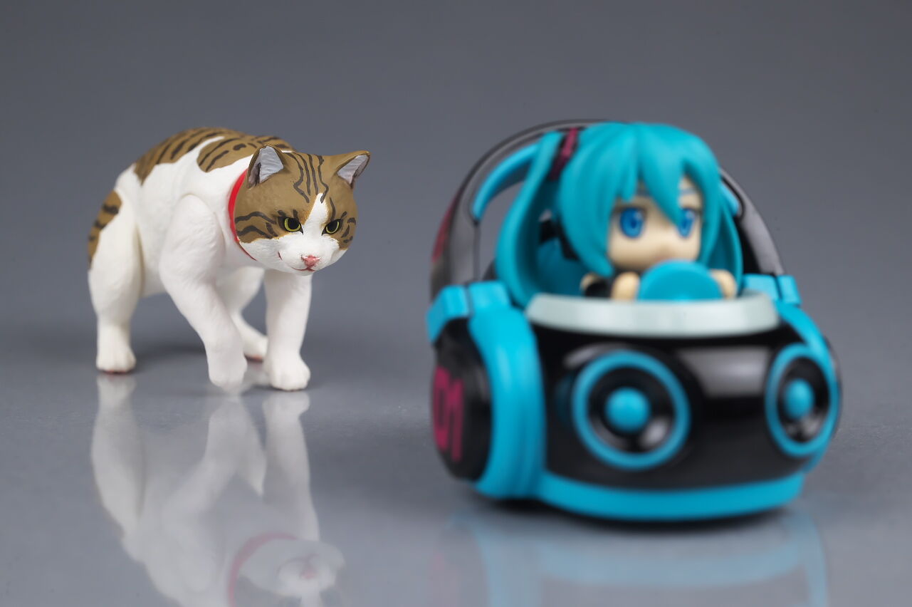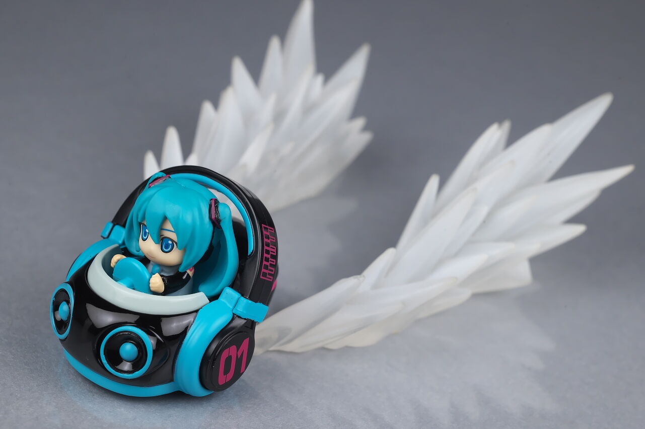 サイズは小さいですがダイキャストの割合が高くなかなかの重量感で、よく見るとディテールなども結構凝っており、乗ってるミクの顔も独特な感じで可愛かったです。