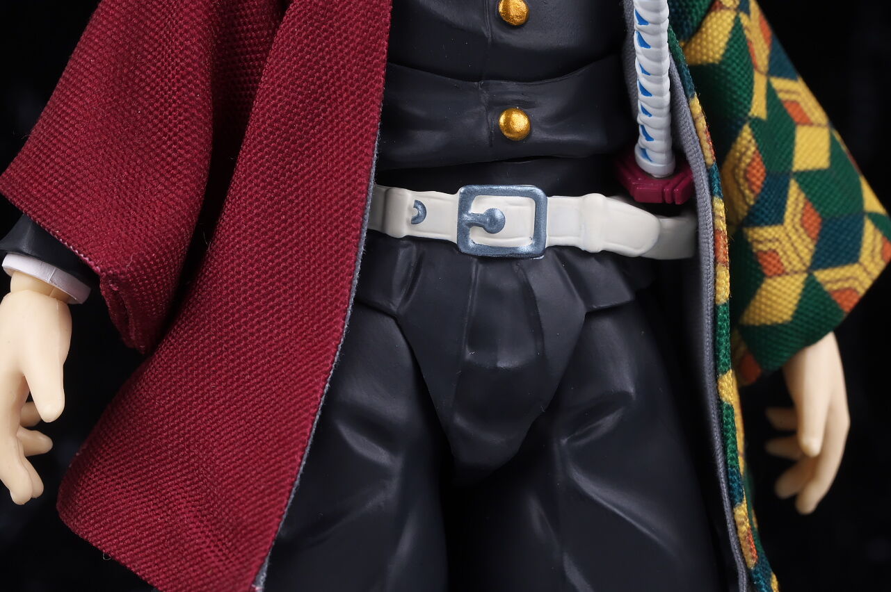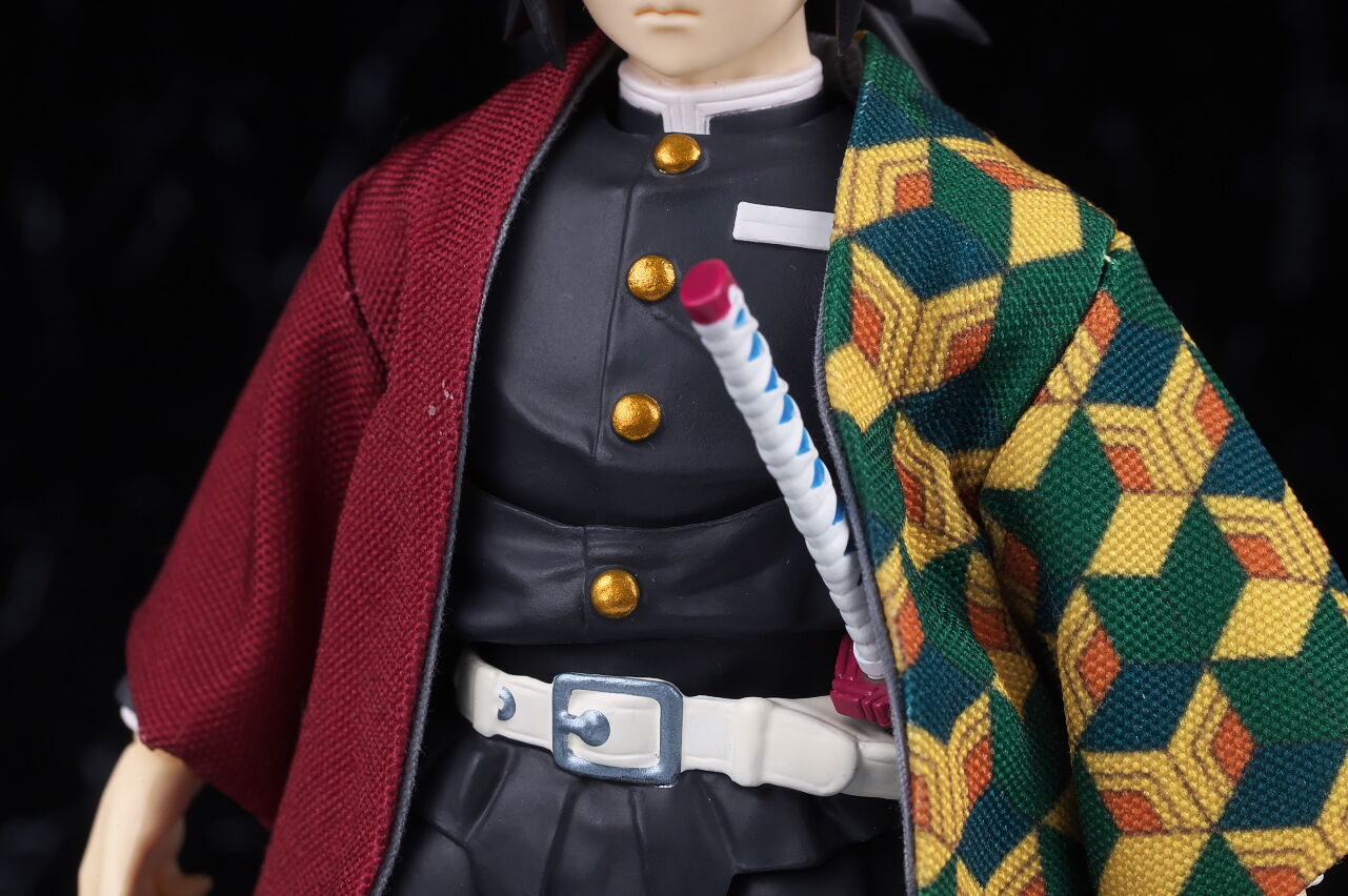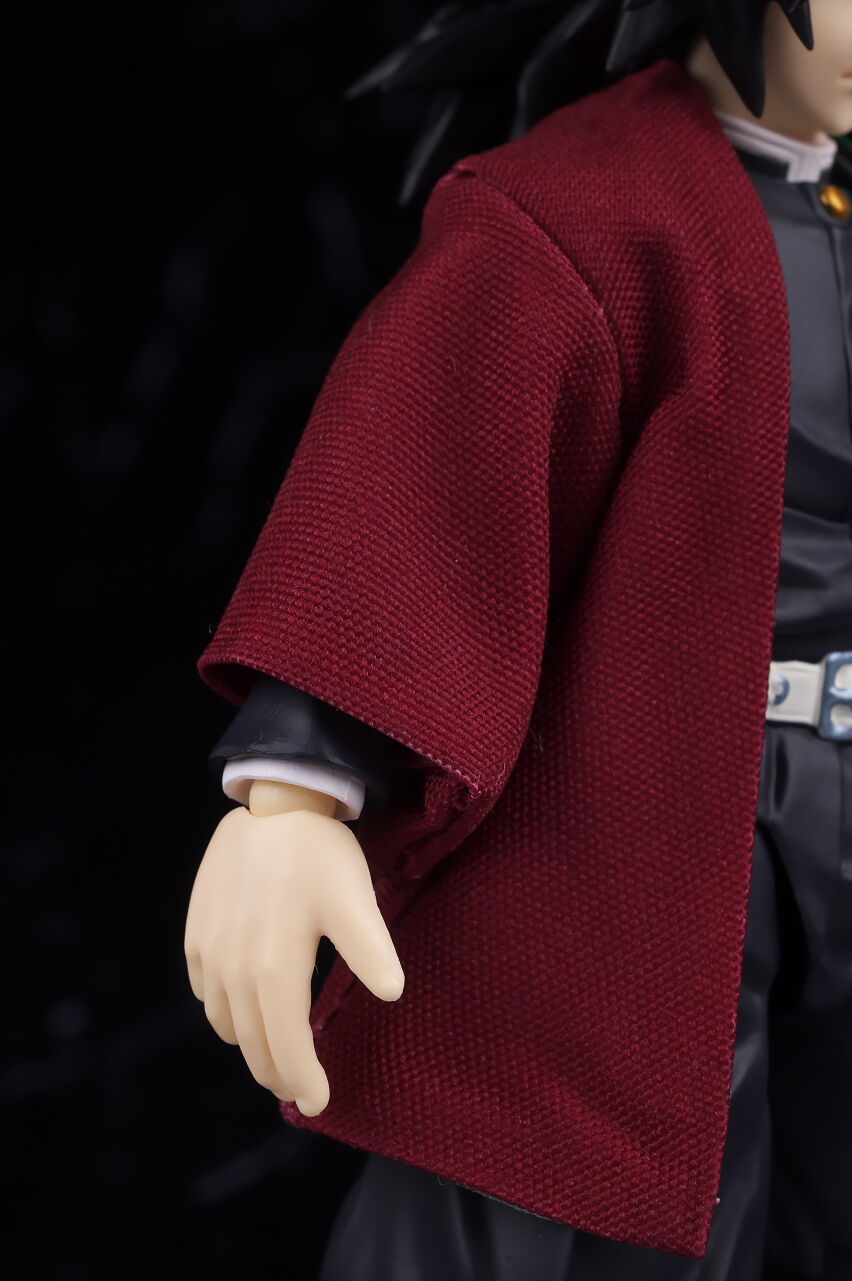 各部位など。隊服は襟やボタン、しわなど精密に造形され見栄え良好。布製の羽織も独特な柄など忠実に再現されてました。
