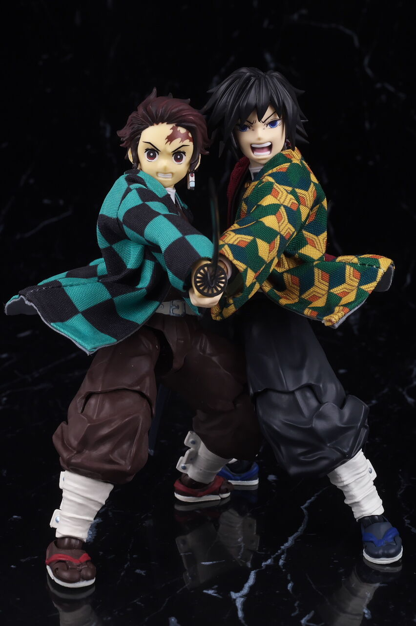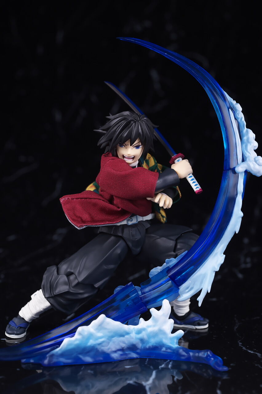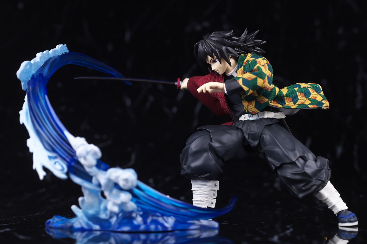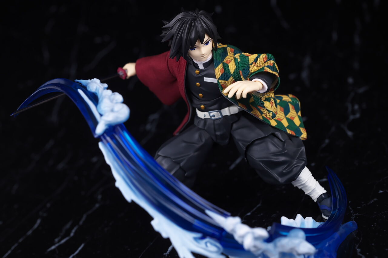 可動もいつも通り良好で、正座用の脚パーツを使うことで派手なアクションも再現出来たり、水の呼吸エフェクトなんかも見た目やギミックなど凝ってて遊びの面でも大きな不満は無かったです。