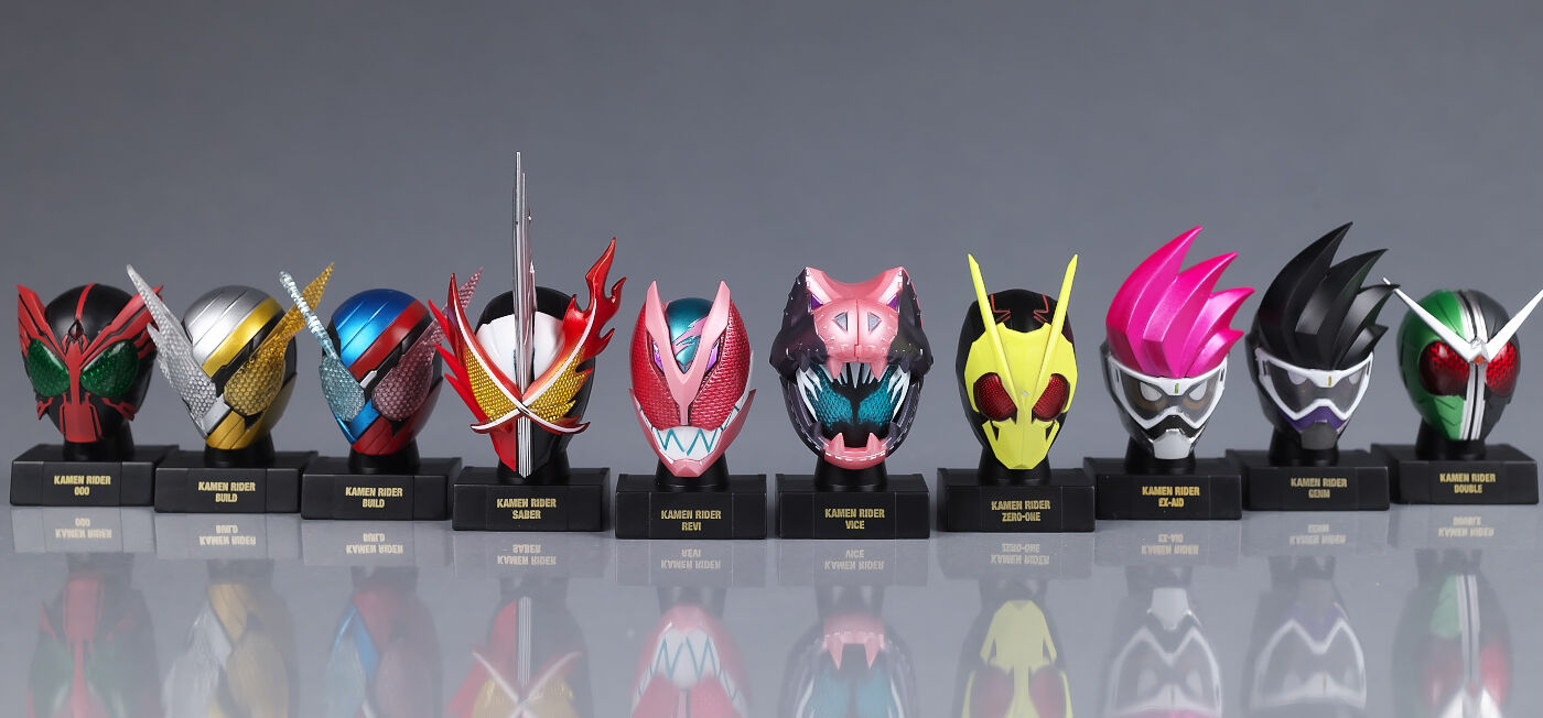 昔のマスクコレクションはシークレットとか発光台座とか色々あって敷居が高いイメージだったので集めてなかったんですが、今回のヒストリーは3千円程で全10種が揃うという手軽な感じだったので購入。