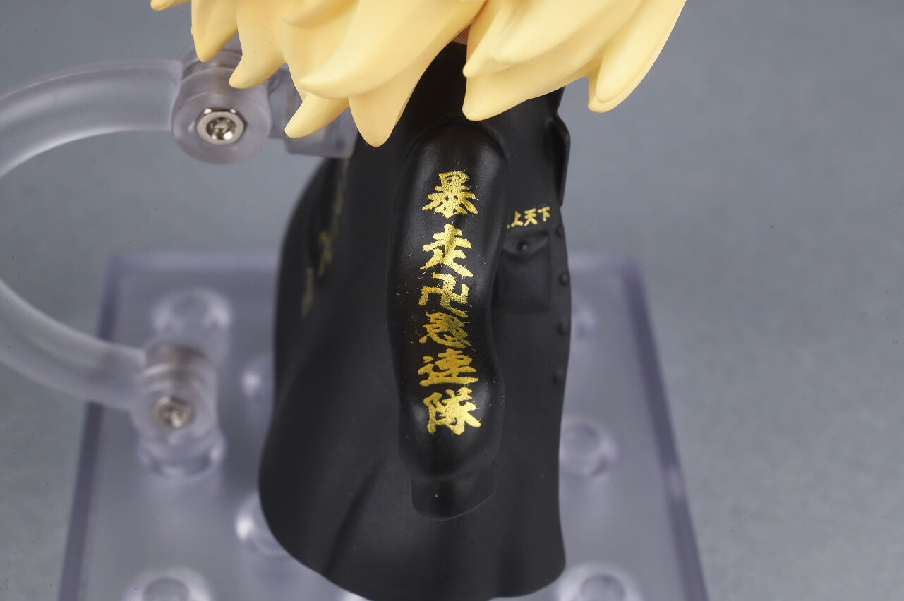 全身。東京卍會の特攻服姿での立体化。肩に引っかけてる上着はスタンド支柱を背中に通して固定。