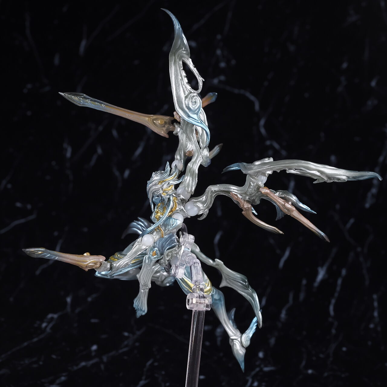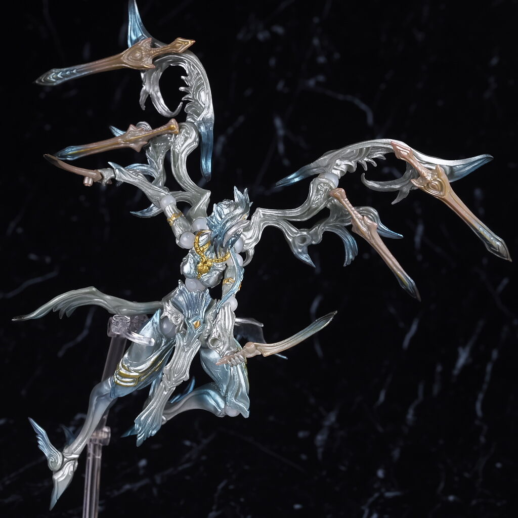そのまま斬撃。腰がかなり細くて魂ステージのクリップでは固定しにくく浮かせるのはちょっと面倒でした。