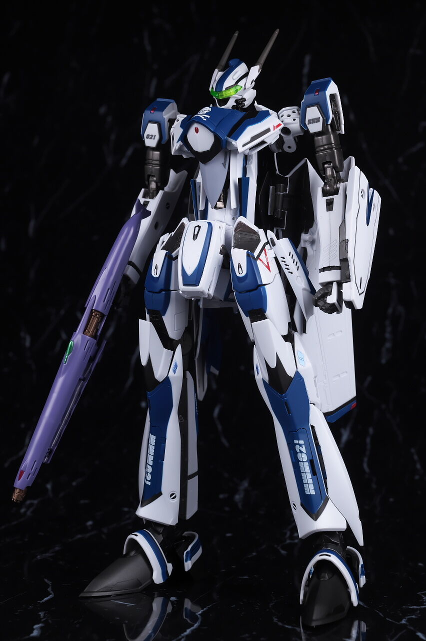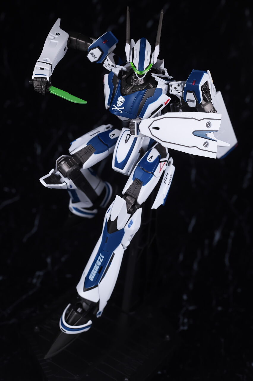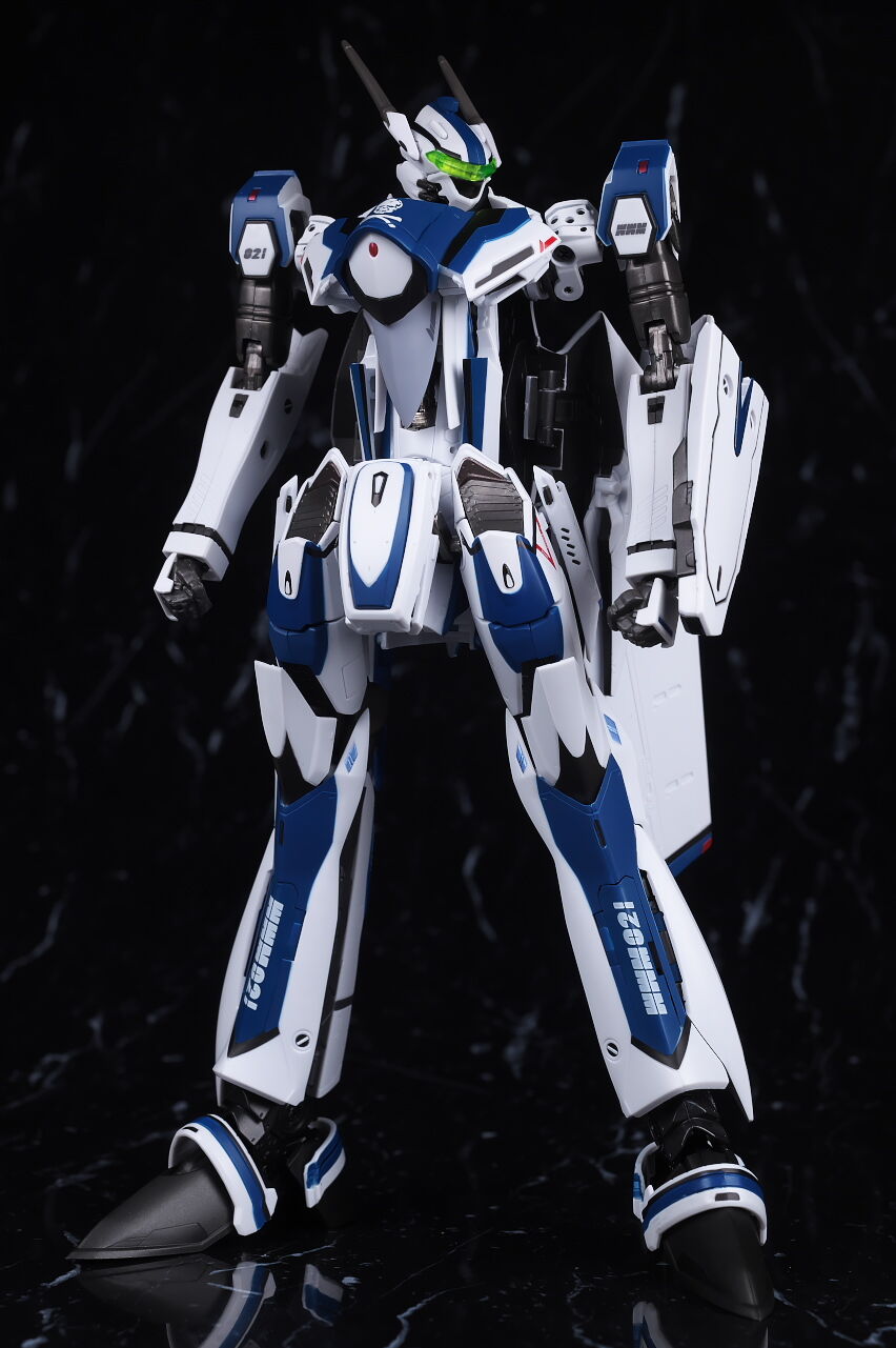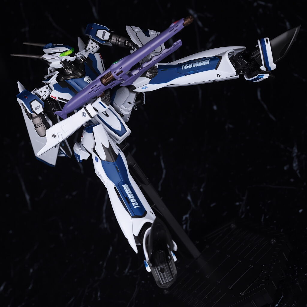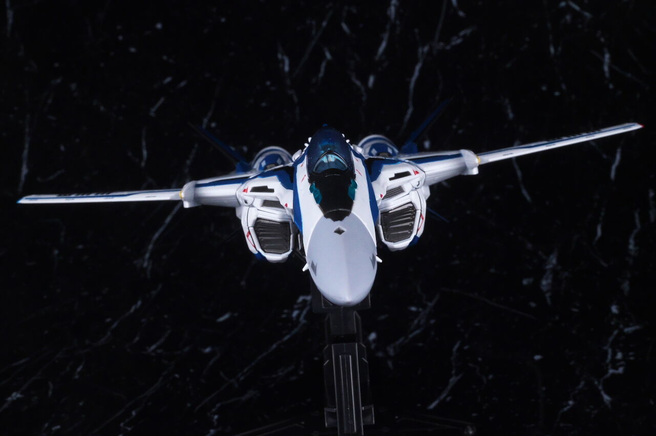 VF-25系の新作はかなり久々ですが、マクロスシリーズの世界展開を記念したスペシャルアイテムだそうで、地球をイメージした青と白のカラーリングがよく合っており、塗装やマーキングの精度も高く、なかなかの格好良さに仕上がってました。