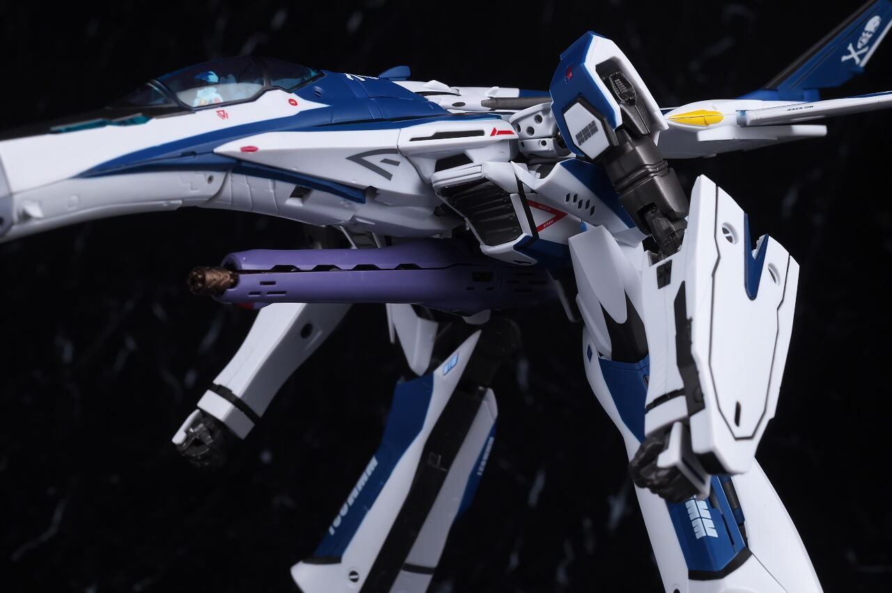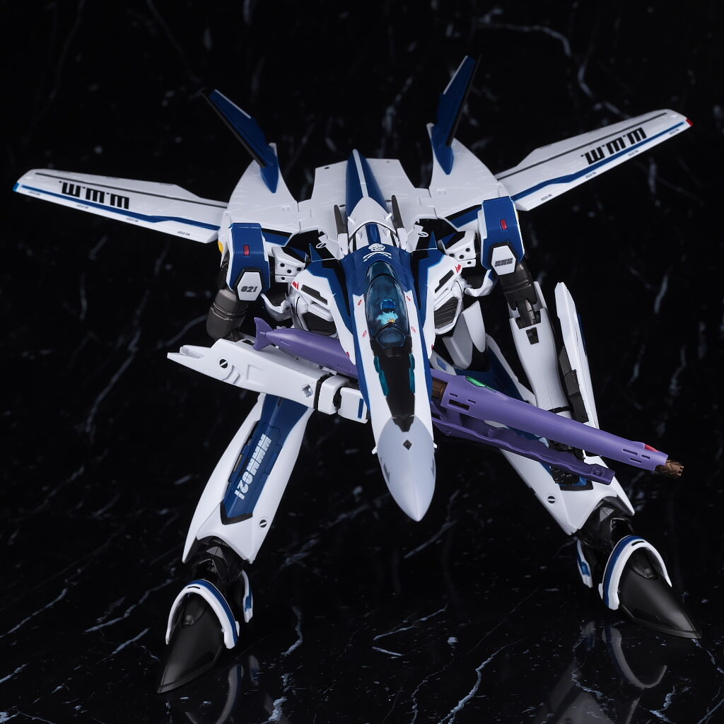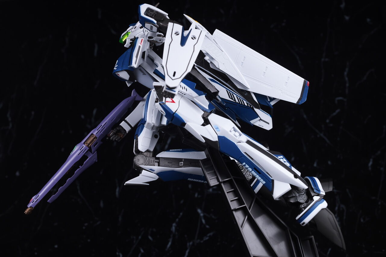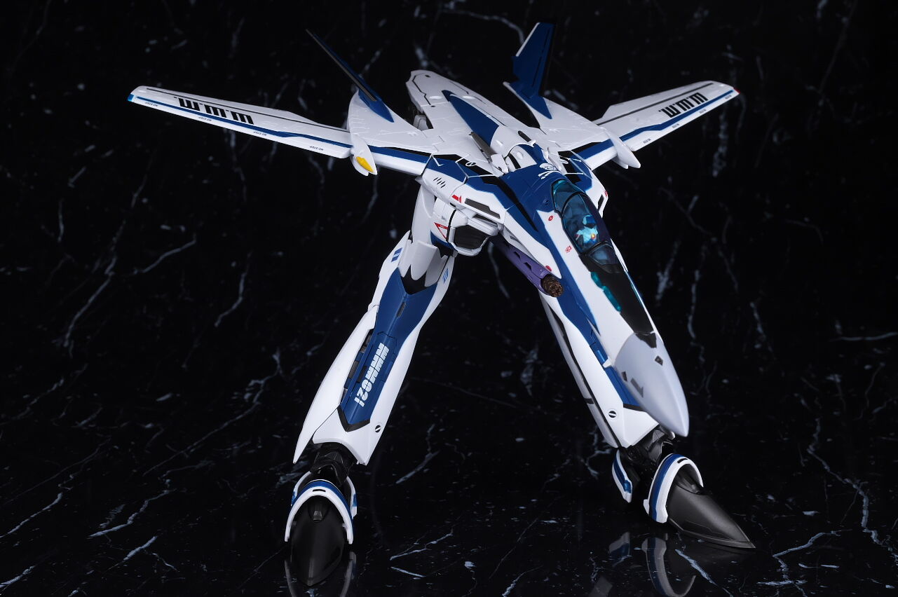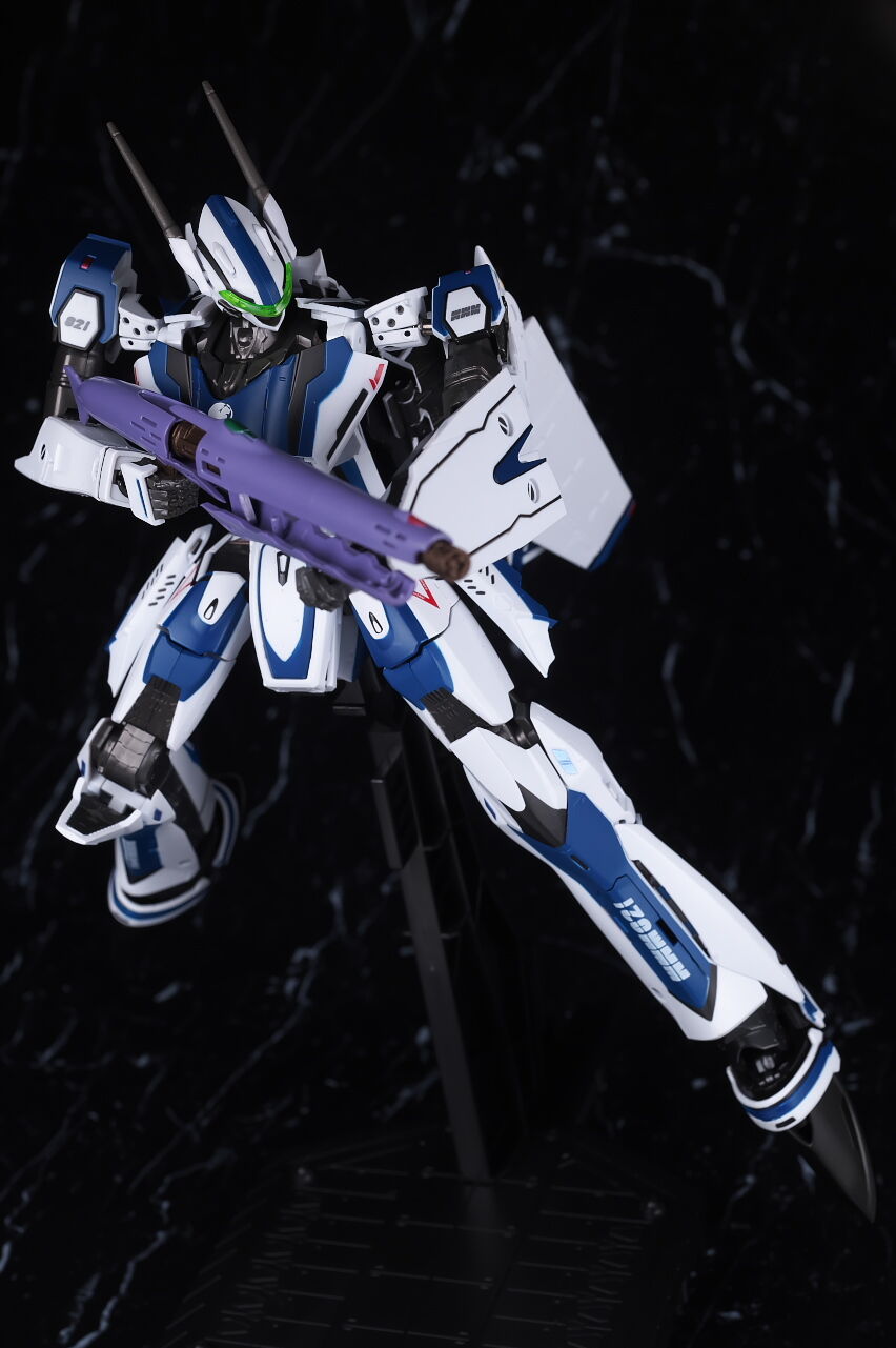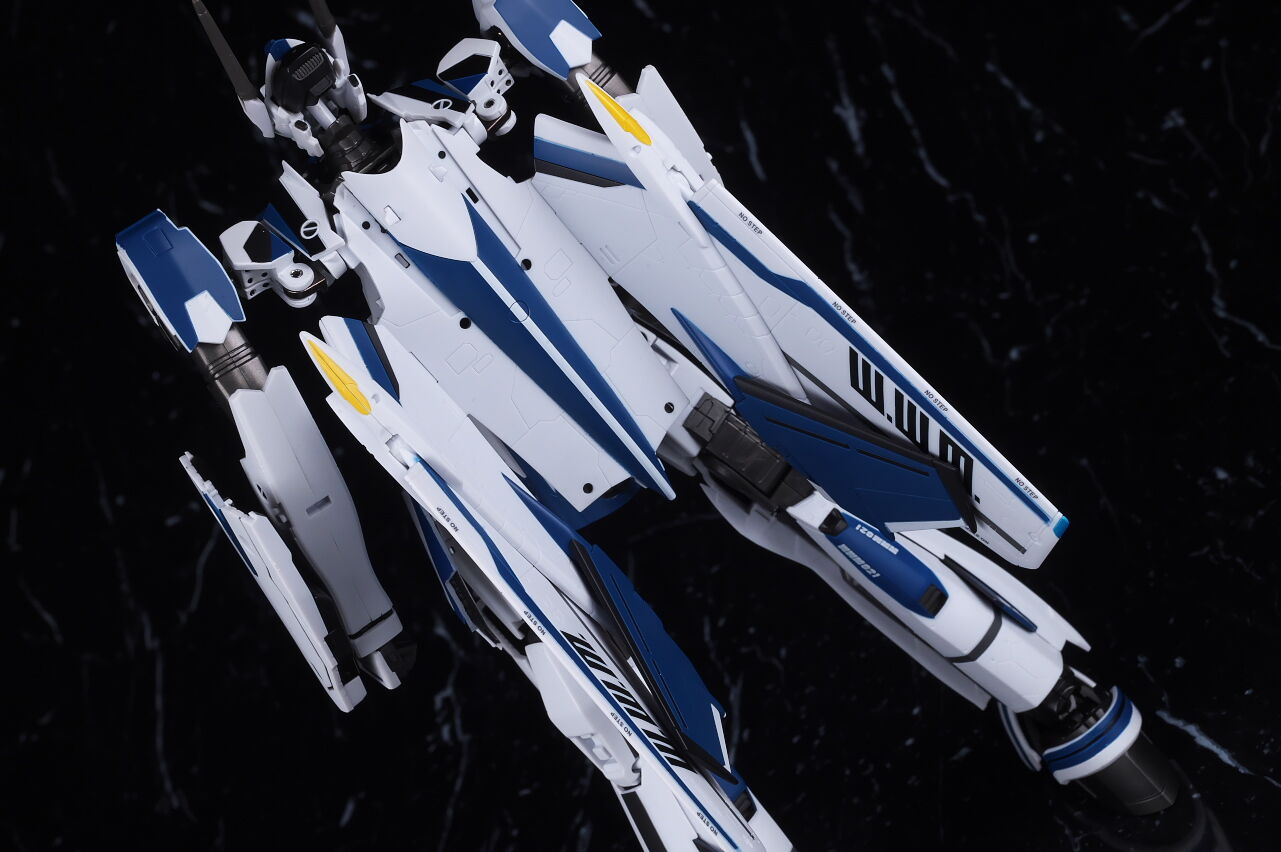 VF-25系の新作はかなり久々ですが、マクロスシリーズの世界展開を記念したスペシャルアイテムだそうで、地球をイメージした青と白のカラーリングがよく合っており、塗装やマーキングの精度も高く、なかなかの格好良さに仕上がってました。