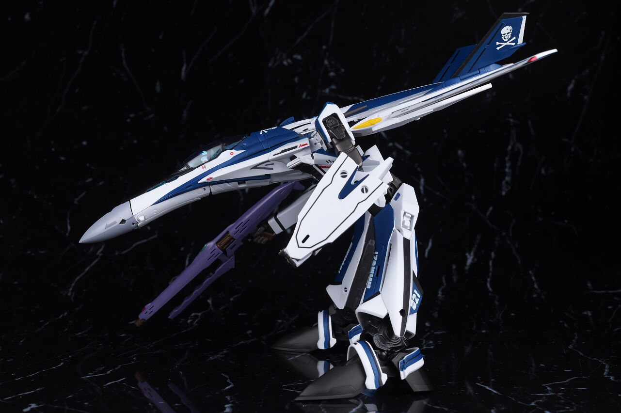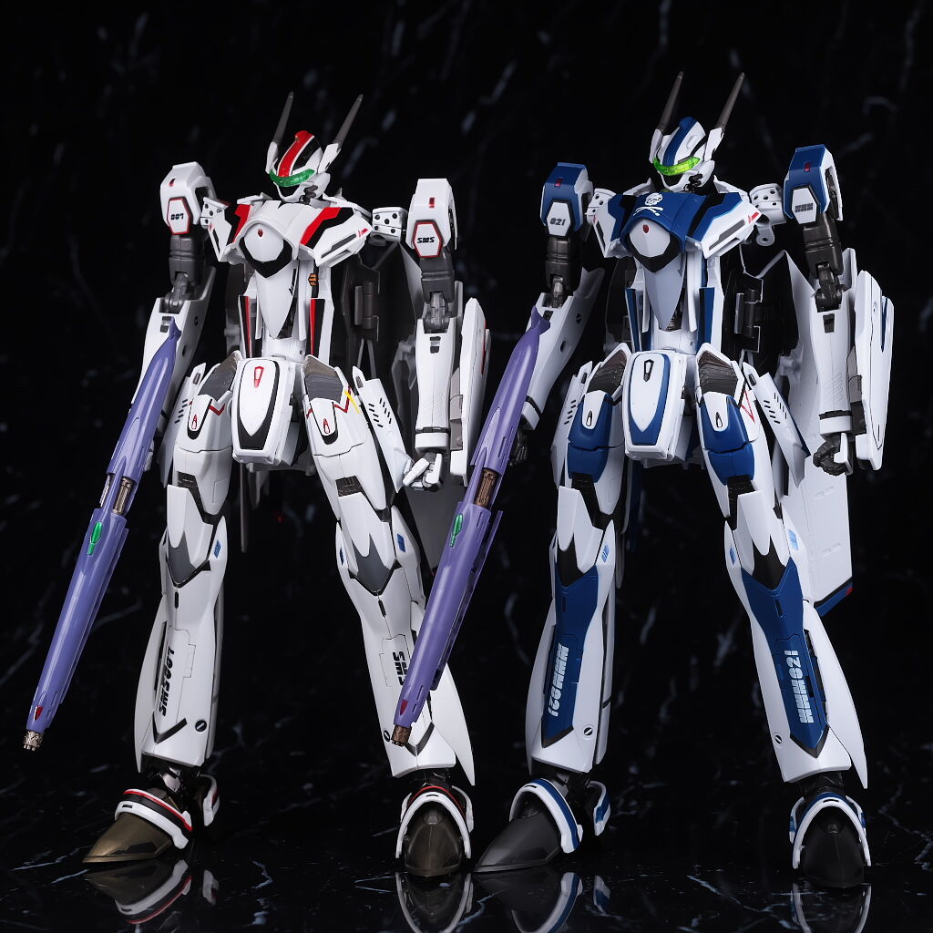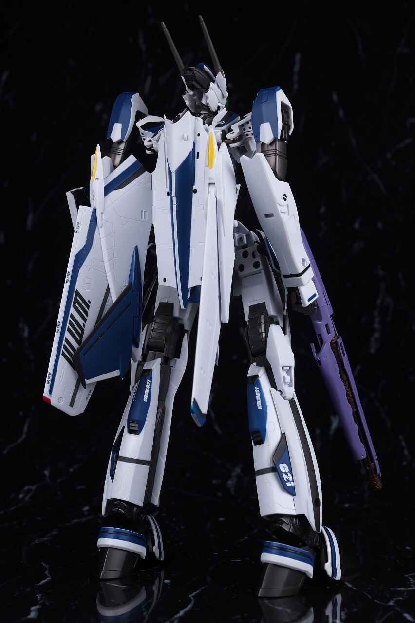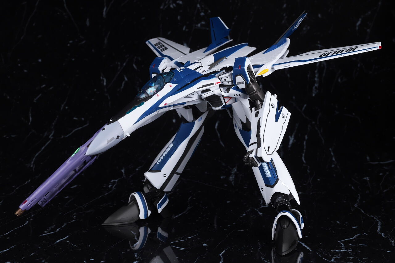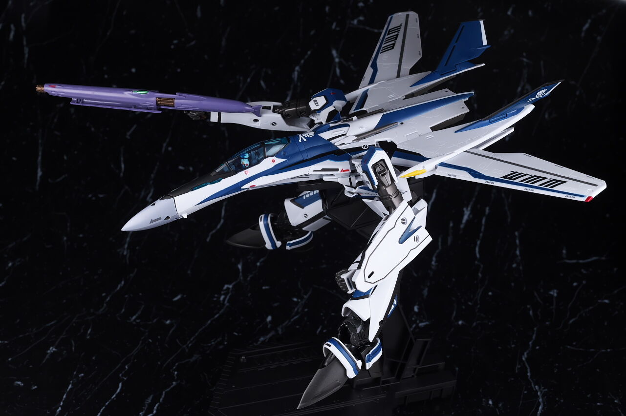 VF-25系の新作はかなり久々ですが、マクロスシリーズの世界展開を記念したスペシャルアイテムだそうで、地球をイメージした青と白のカラーリングがよく合っており、塗装やマーキングの精度も高く、なかなかの格好良さに仕上がってました。