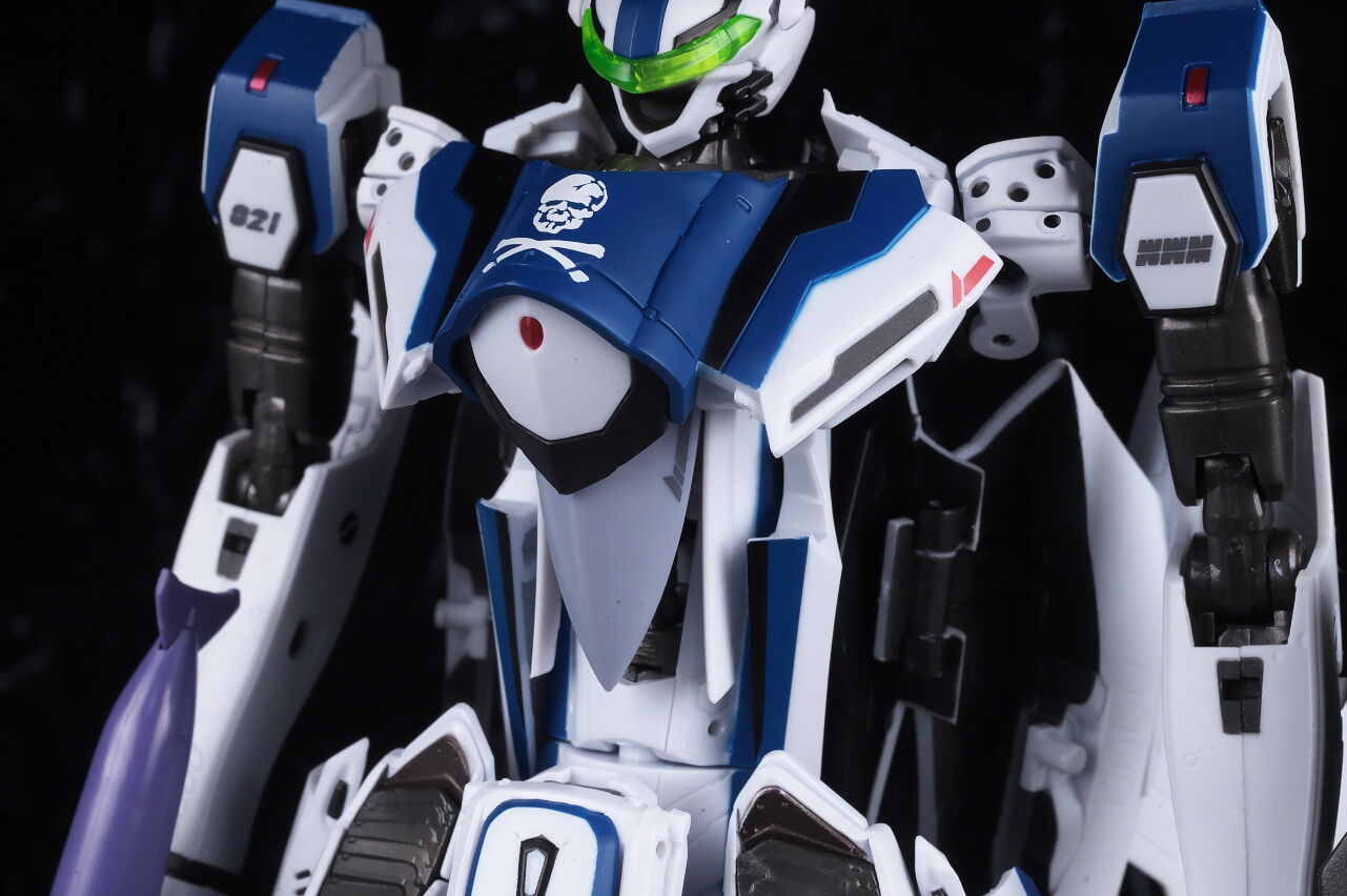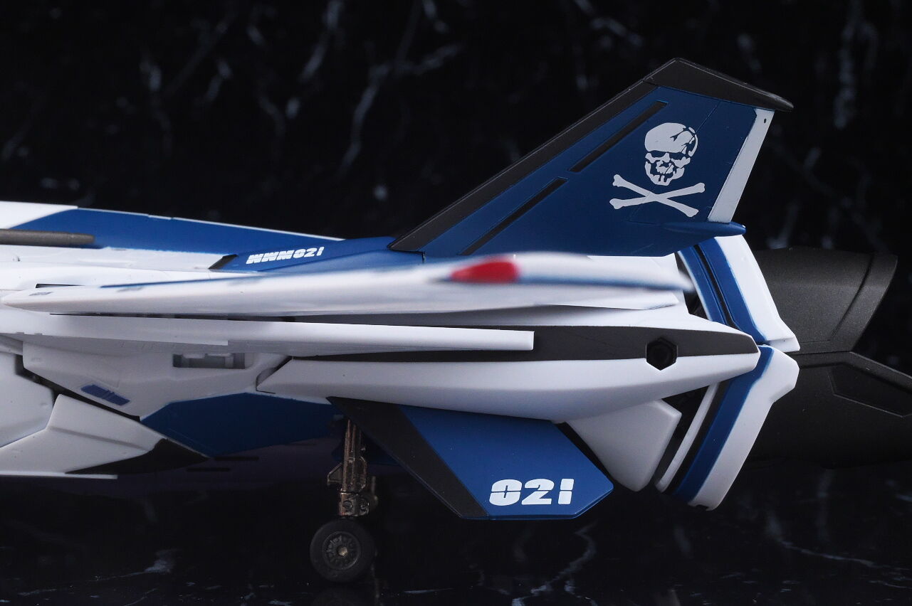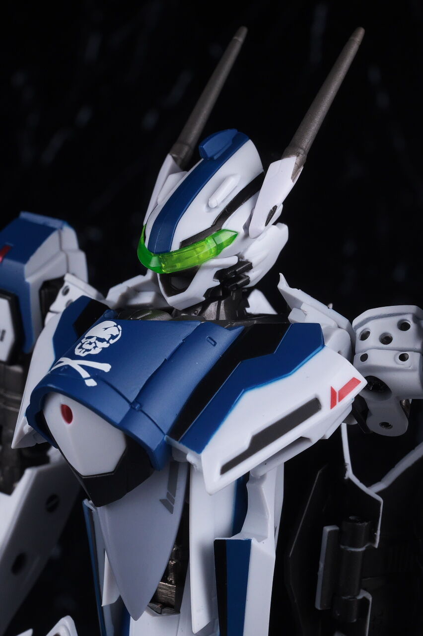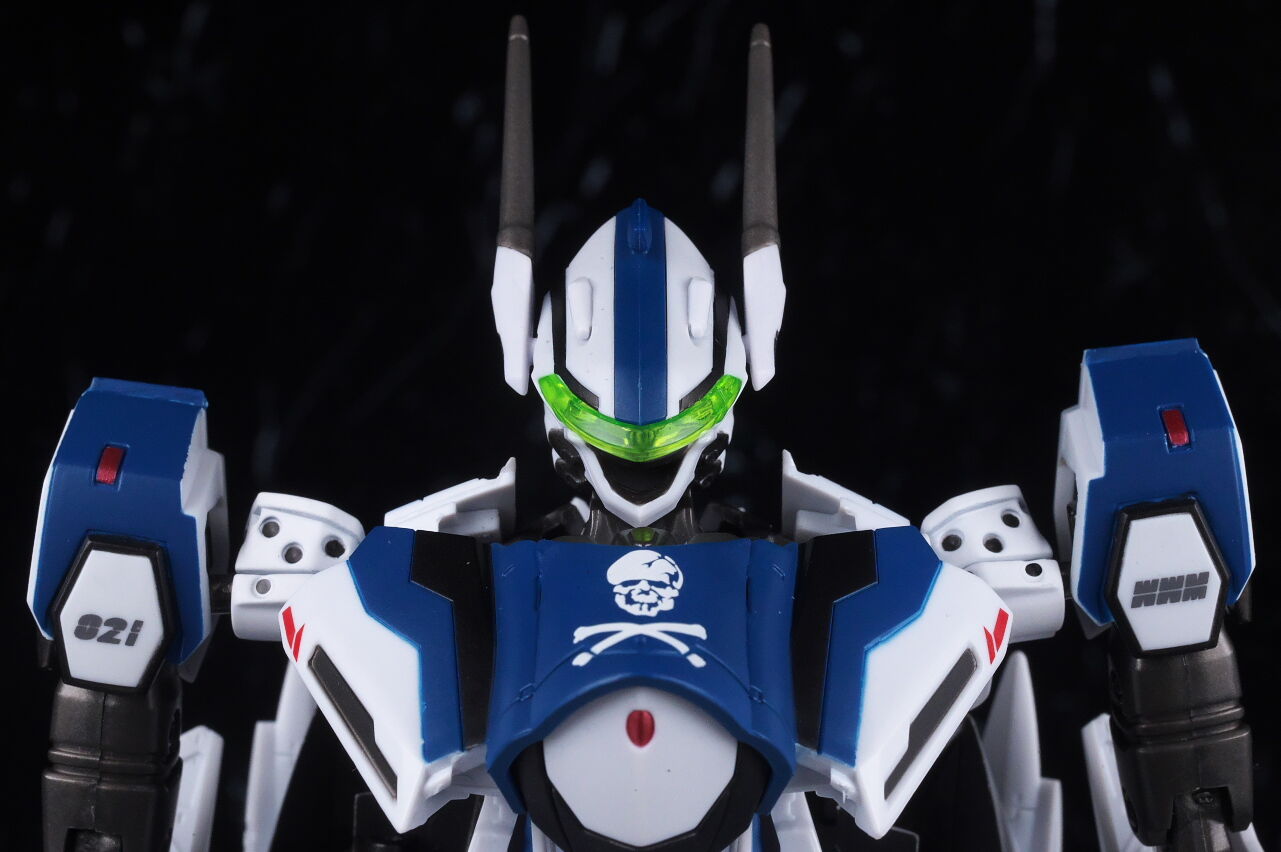 各部位など。体もVF-25Fなどと同じで青白中心のカラーリングに。胸部に大きい髑髏マークがあるのが特徴。