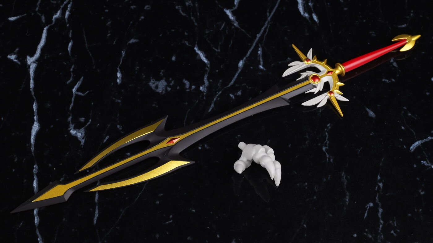 右手首は剣王登龍剣に。16㎝程のサイズで剣王の名にふさわしい迫力。