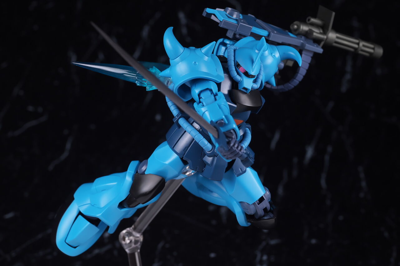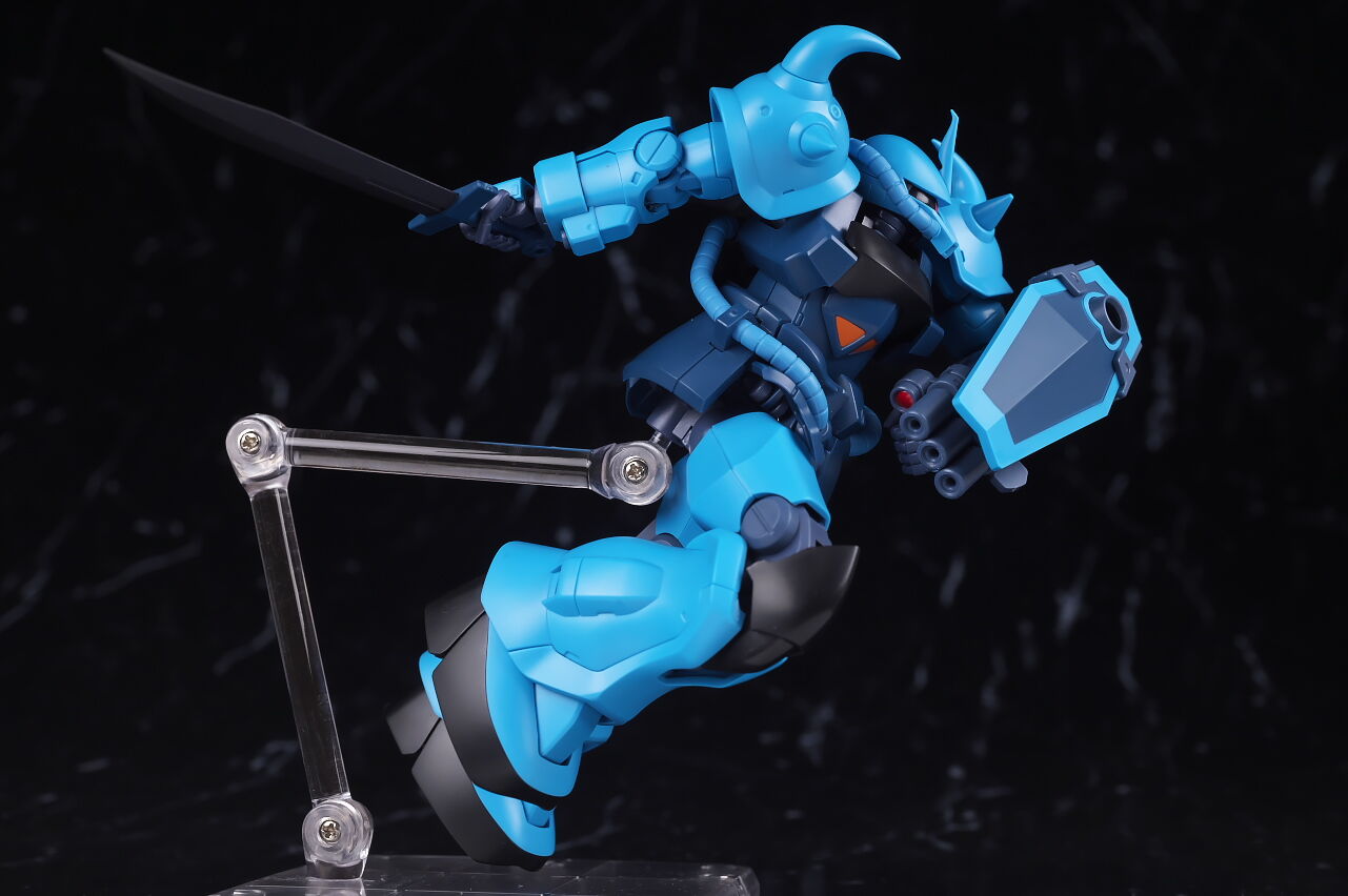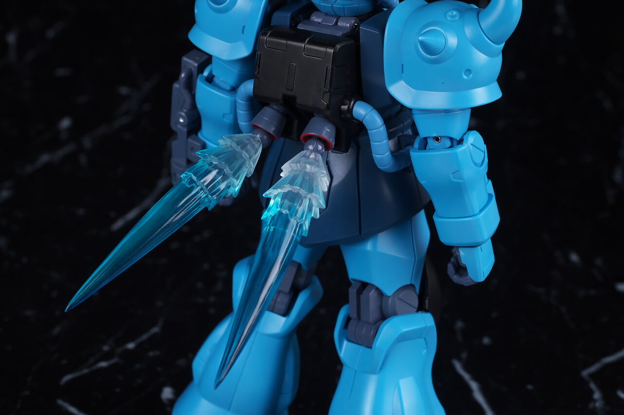 グフカスタムは2011年に独特なマッシブ体型で武器の換装ギミックなどを重視した物が出ていましたが、今回はver. A.N.I.M.E.ということで劇中の見た目に極力近づけた仕様で発売。