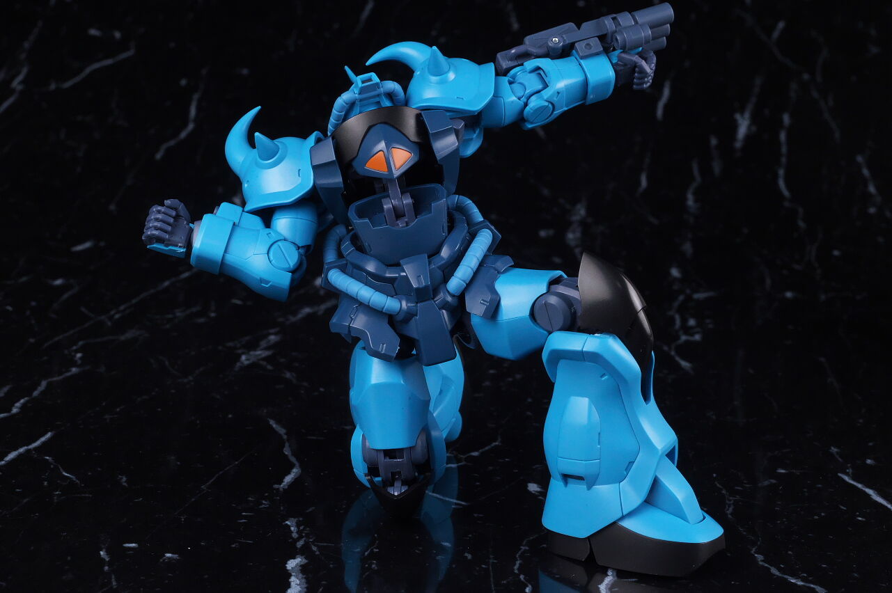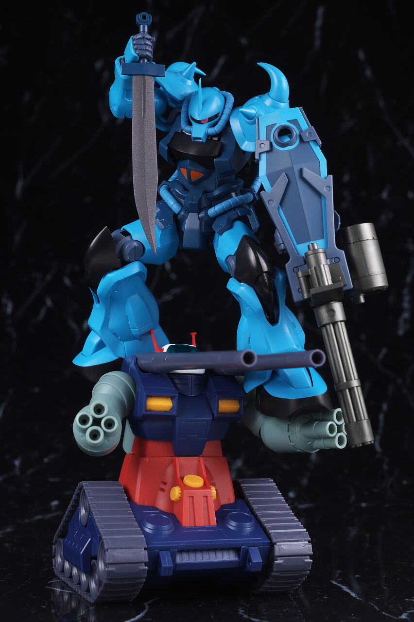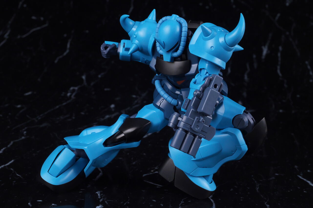 グフカスタムは2011年に独特なマッシブ体型で武器の換装ギミックなどを重視した物が出ていましたが、今回はver. A.N.I.M.E.ということで劇中の見た目に極力近づけた仕様で発売。