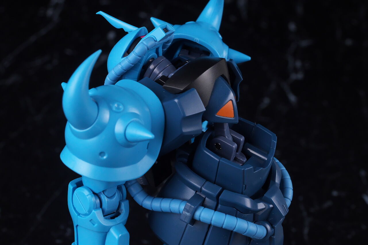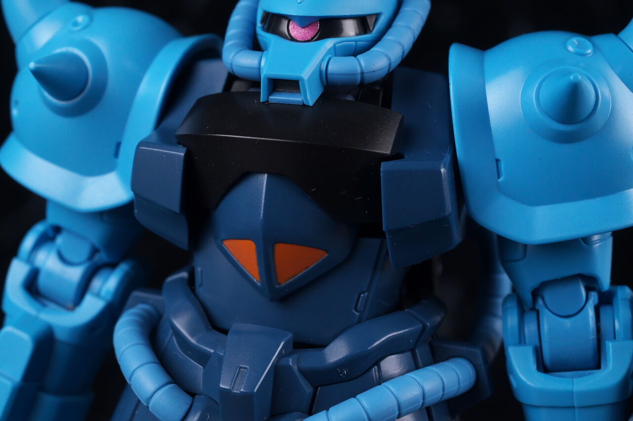 顔。劇中通り特に癖の無い普通のグフ顔でツノの造形などもシャープな仕上がり。