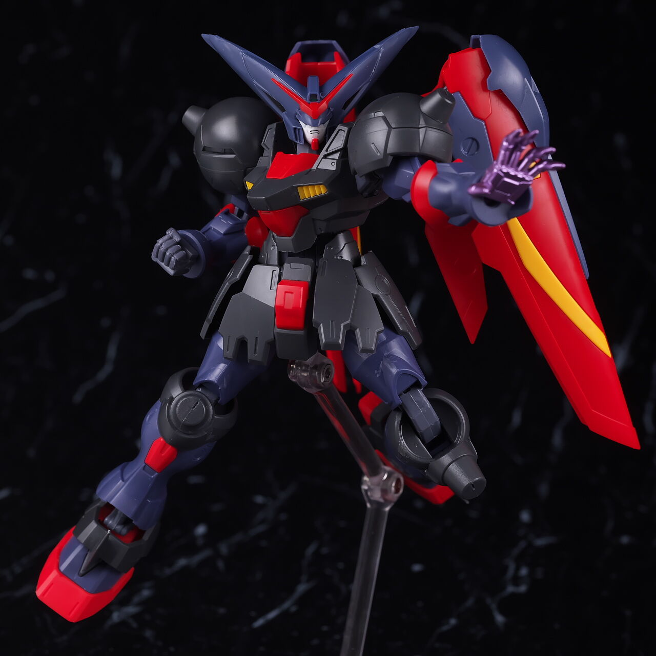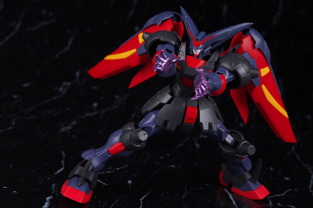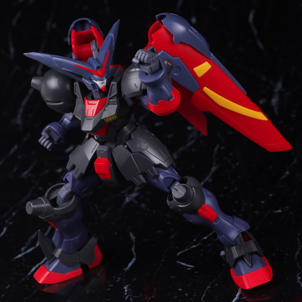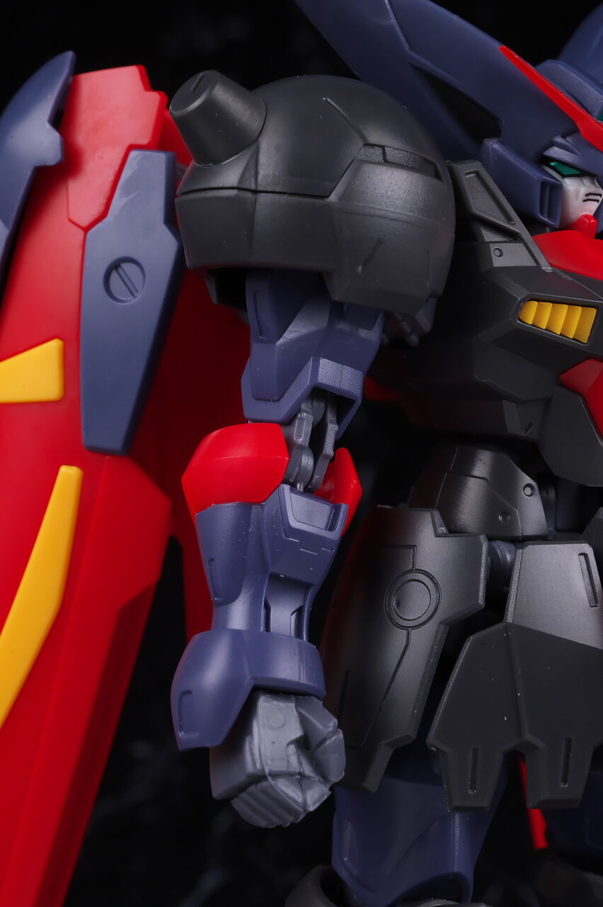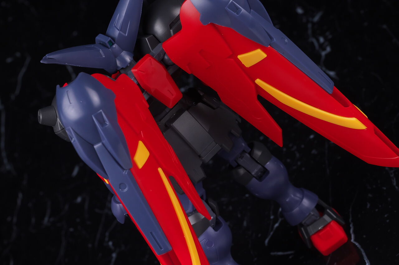 全身。ガンダムユニバースに多いごつめな体型。目立ったアレンジは無いですが黒紫共に色が少し薄めなのが特徴。