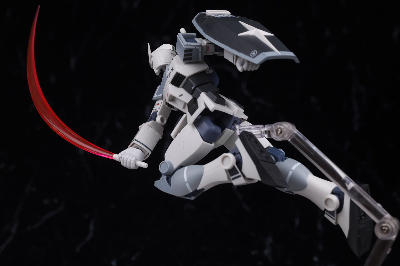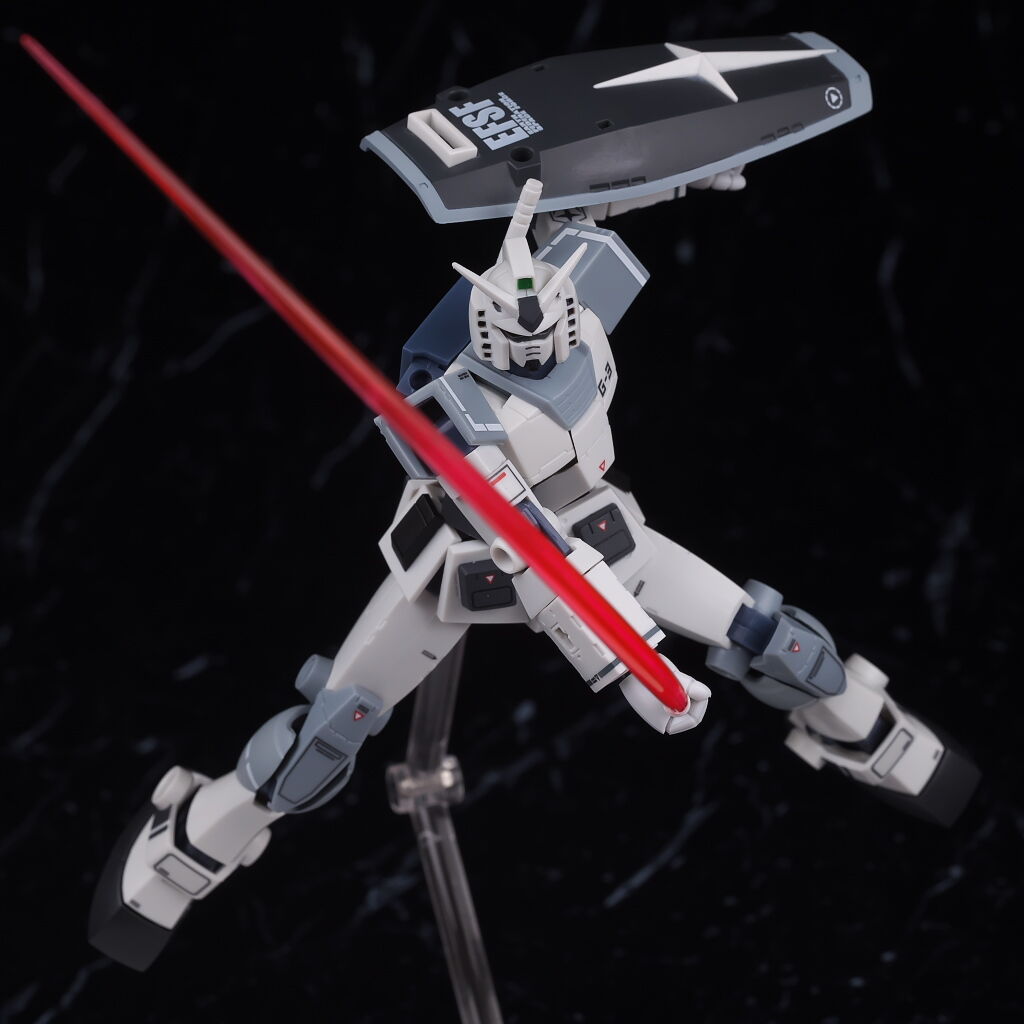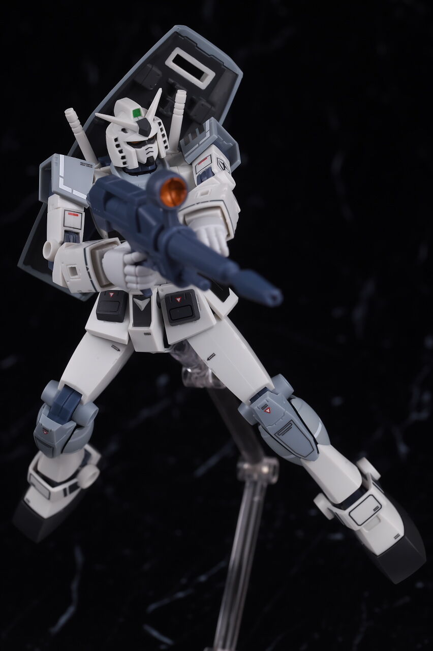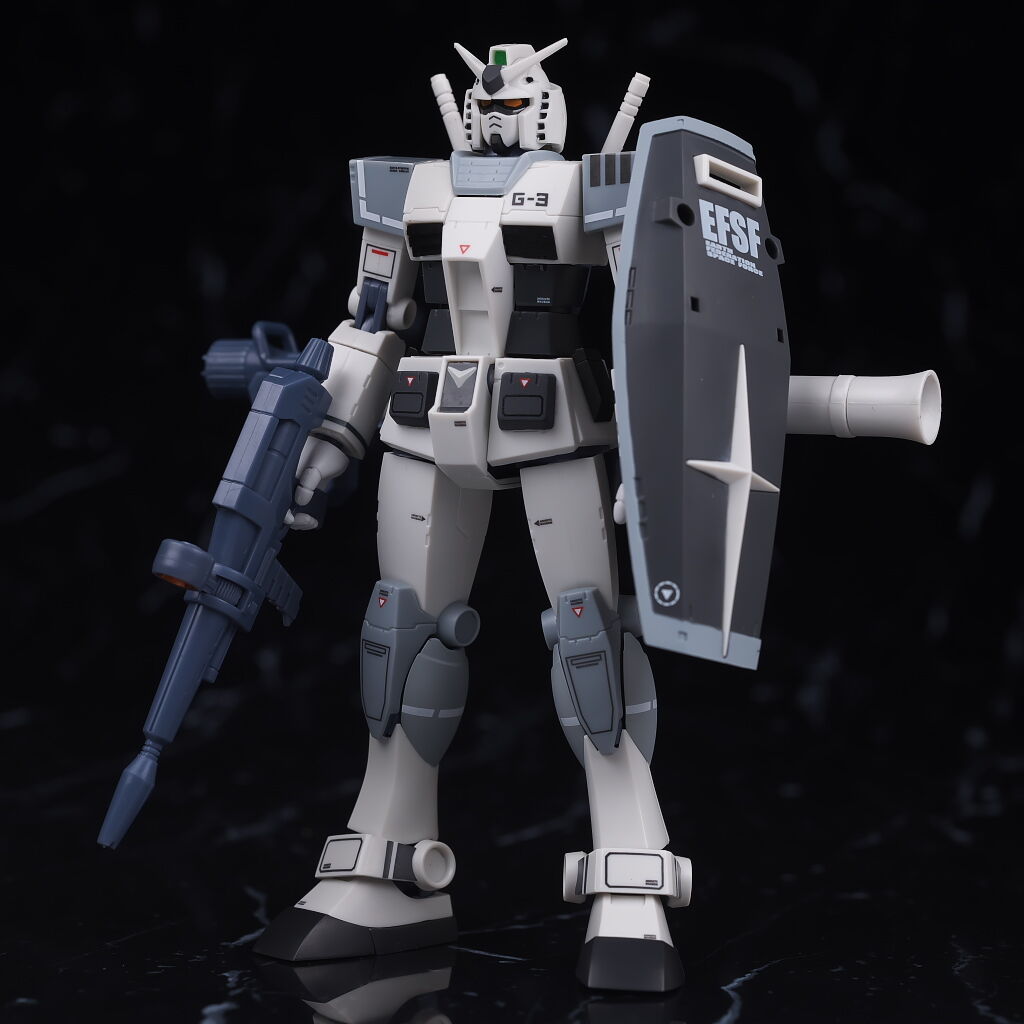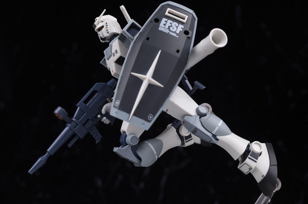 G-3ガンダムと言えば全身暗めのグレーと言うイメージでしたが、今回は薄い部分は更に薄く、濃い部分は更に濃くなっており、モノクロ感が引き立つ独特なカラーリングになってました。