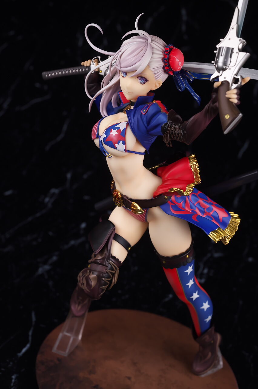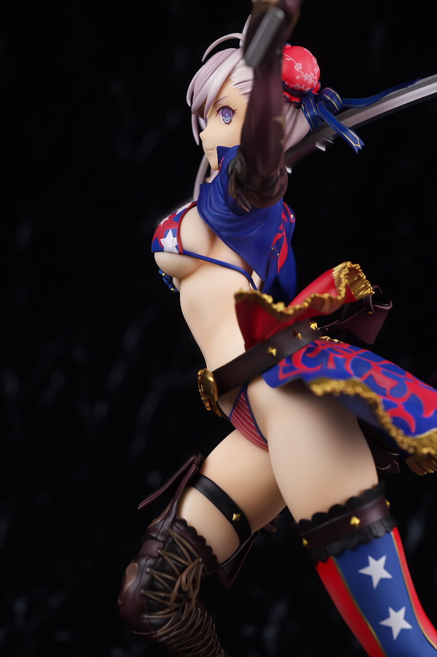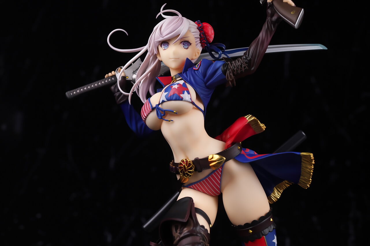 見本の時点でかなりインパクトのあった水着武蔵のフィギュアですが、アルターらしい丁寧な造形塗装で、顔やメリハリのあるプロポーション、衣装のディテールなど完璧に再現されており、非常によく出来てました。
