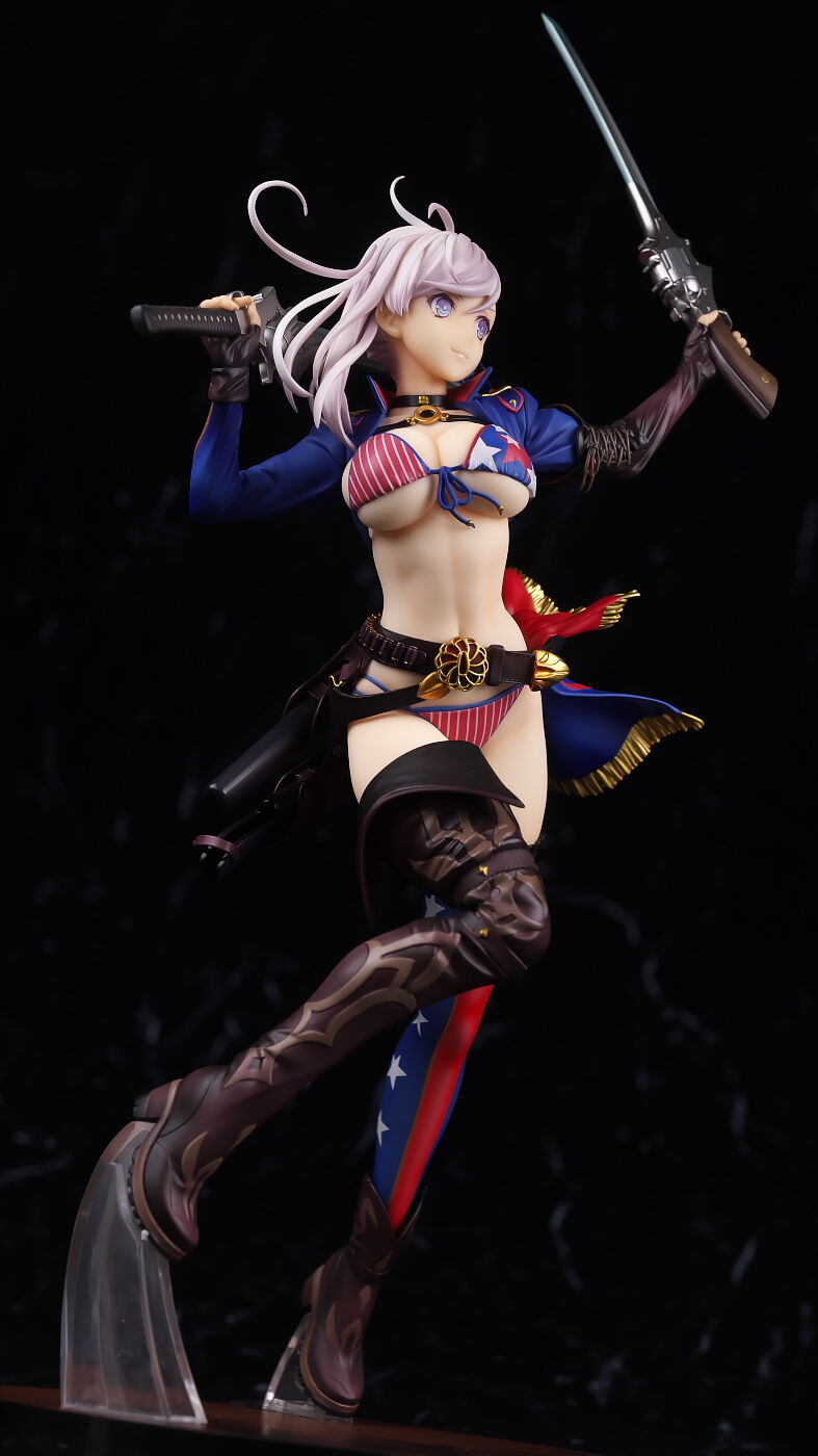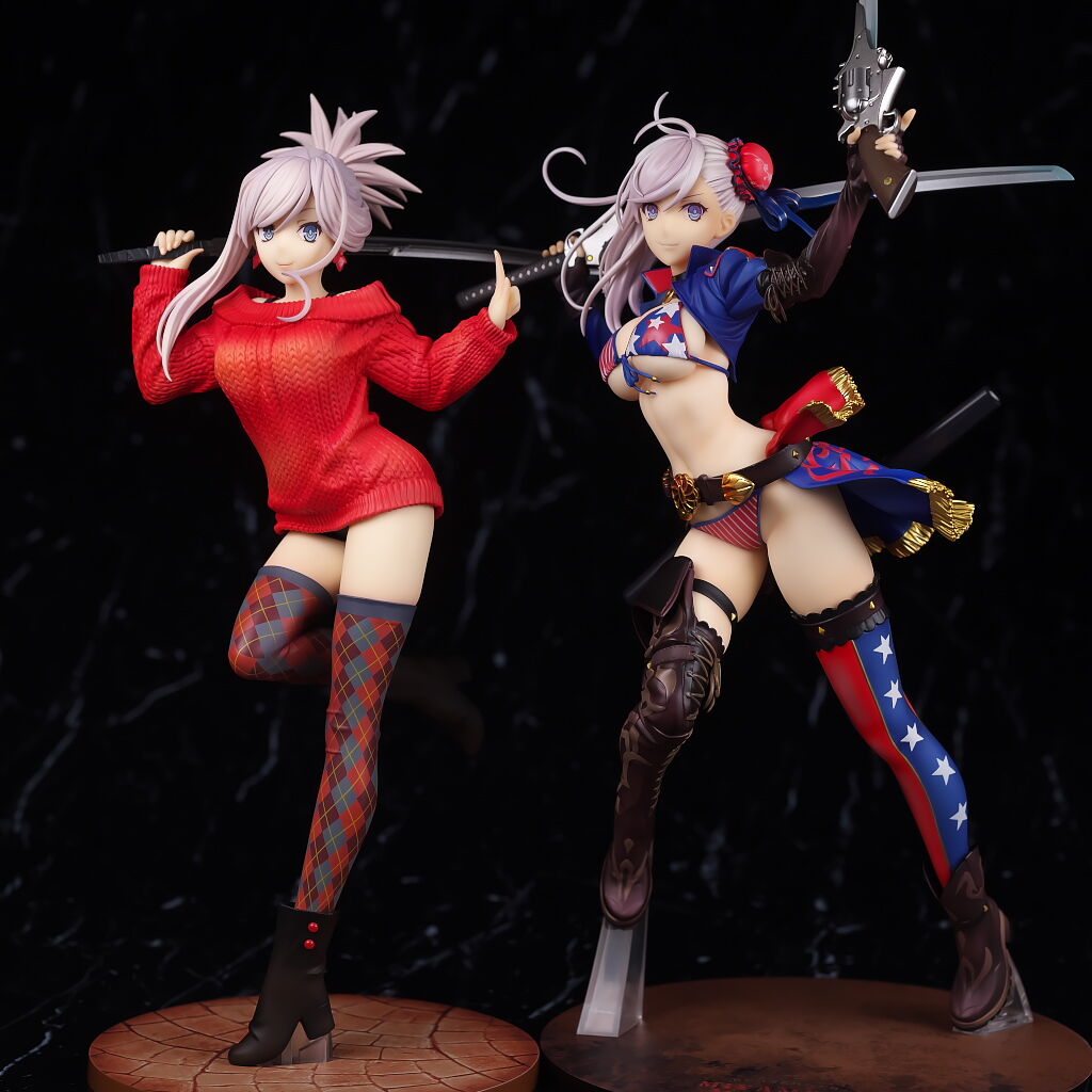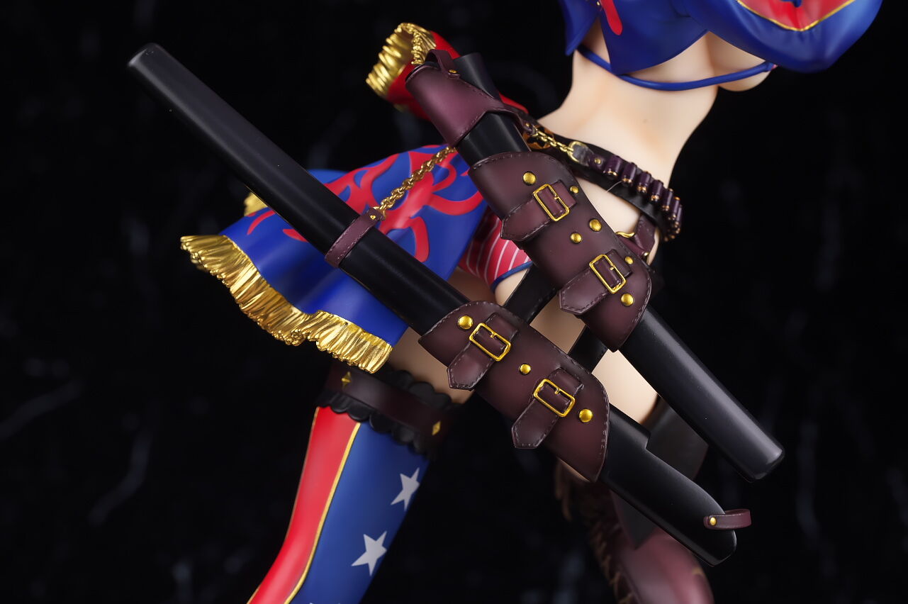 見本の時点でかなりインパクトのあった水着武蔵のフィギュアですが、アルターらしい丁寧な造形塗装で、顔やメリハリのあるプロポーション、衣装のディテールなど完璧に再現されており、非常によく出来てました。