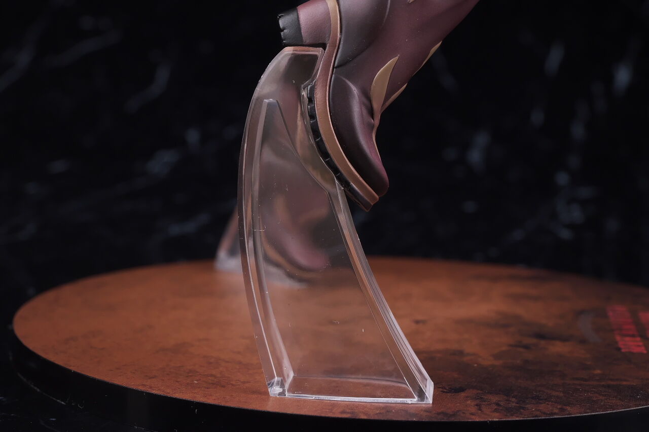 右足は浮いた状態になっており下にクリアパーツの補助台座を置く形式。固定はされてないですが置かないと傾くので必須。