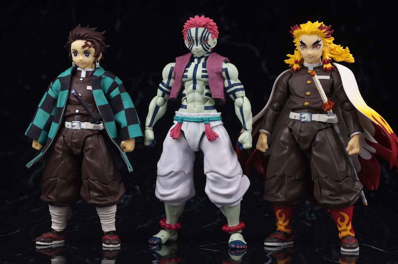 同じバズモッドの炭治郎や煉獄さんと。サイズは少し大きめでした。