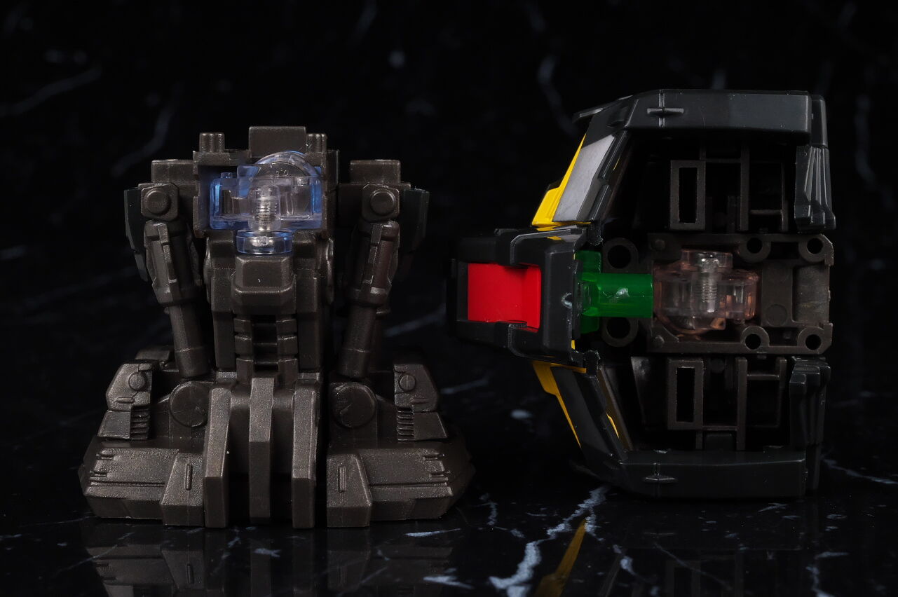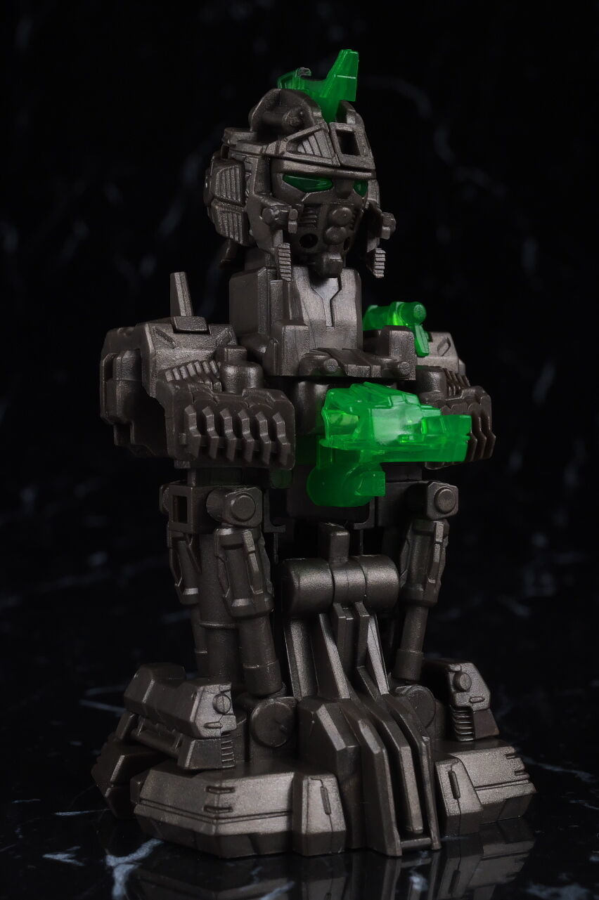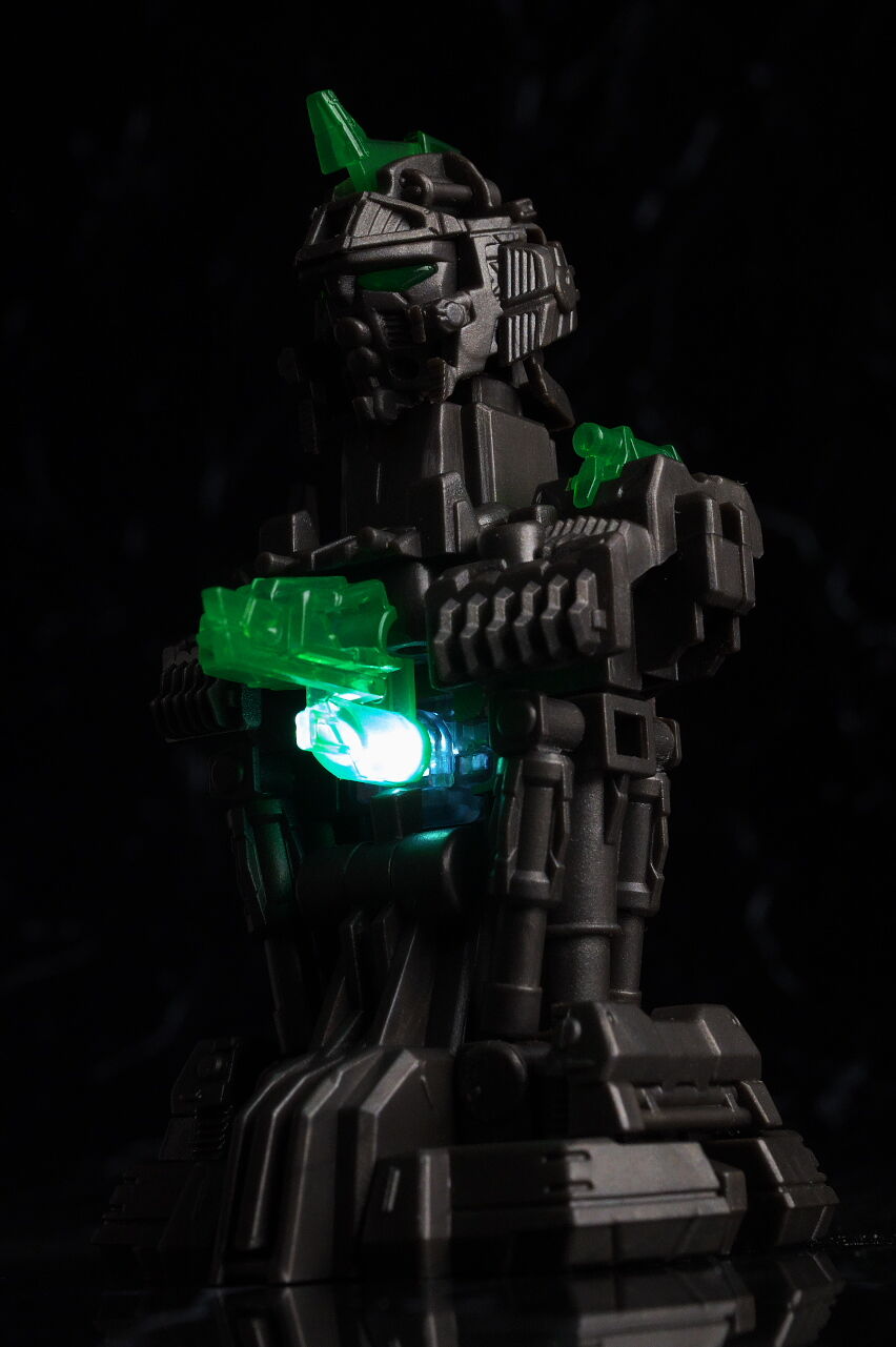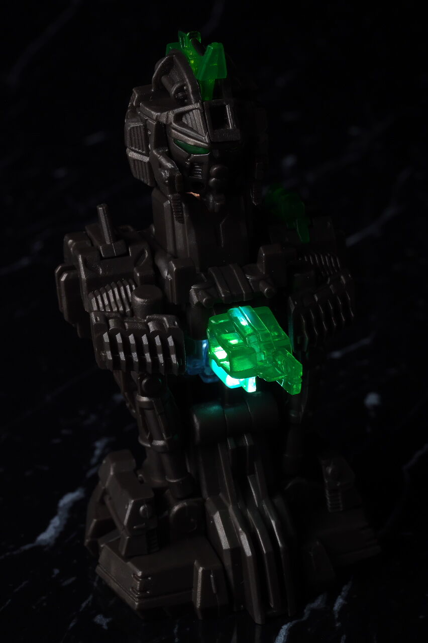 出来の方は、目と胸部両方光らせるにはルミナスユニットが2個必要だったり、構造上目の光が胸より弱い点は少し気になりましたが、外装と内部メカを組み合わせた時の造形はかなり精密で格好良く、成型色、塗装部分共に質感も良好、500円のガチャガチャにしてはボリュームも十分で満足度の高い内容でした。