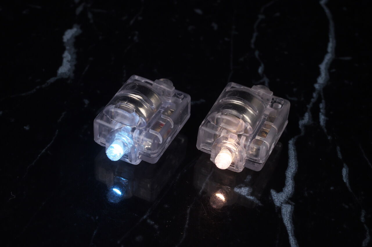 発光させた状態。左はやや暗め、右はかなり暗めで写した状態。