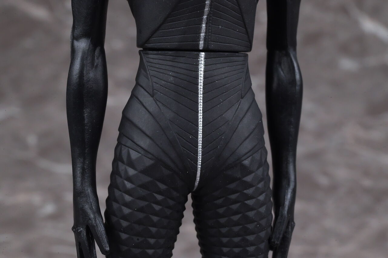 各部位など。体のデザインはシンプルで、色もほぼ黒で中央に銀ラインがあるのみ。体型は劇中通りでした。