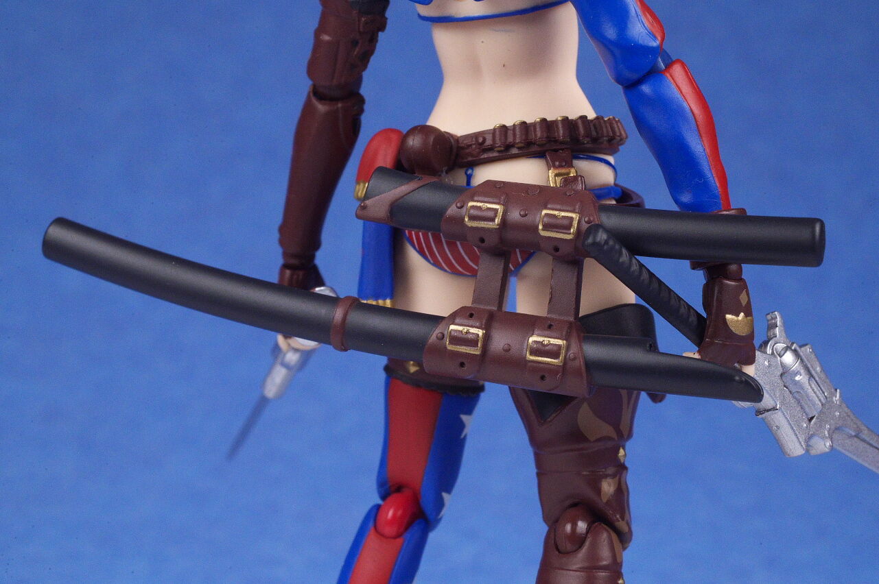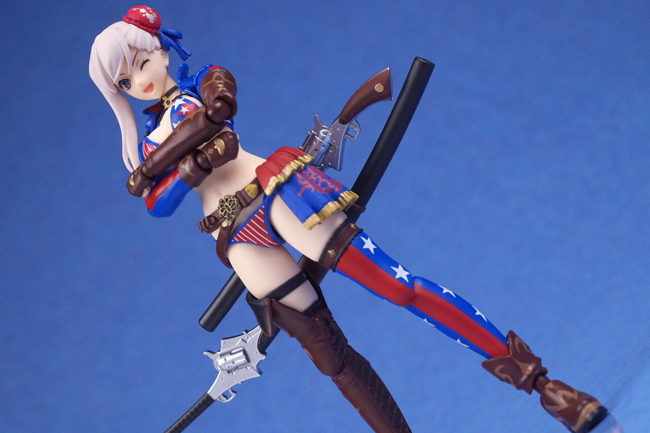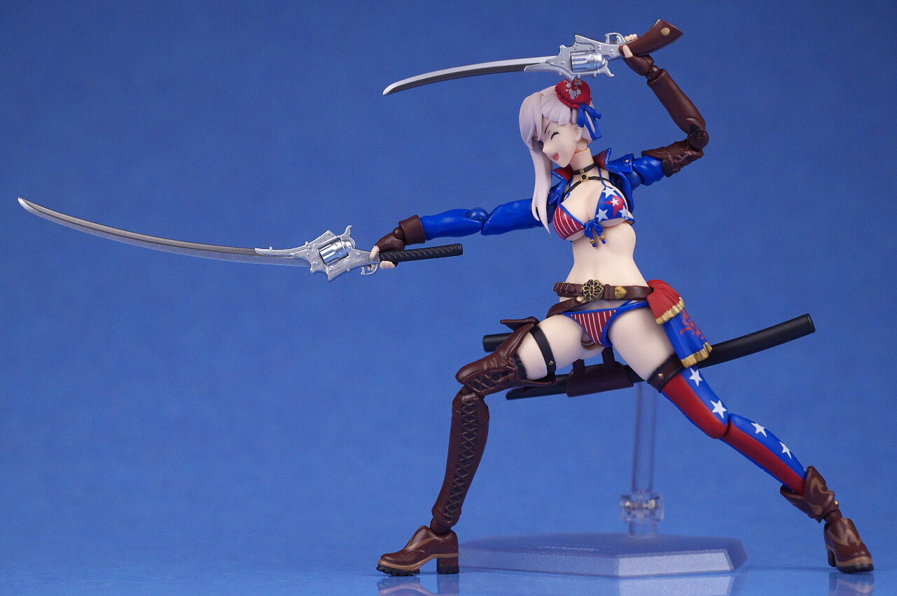 可動も股関節周りだけ少し窮屈でしたが、他は良好で、イラストやゲーム中のモーションなども大体は再現出来、武器も珍しい銃剣の二刀流で新鮮味もあって遊びの面でも大きな不満は無かったです。