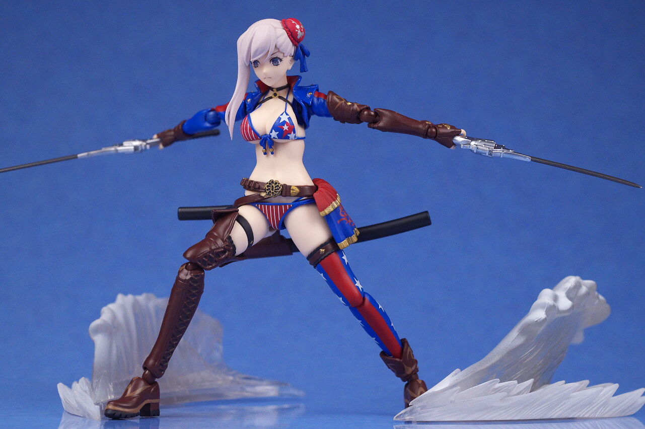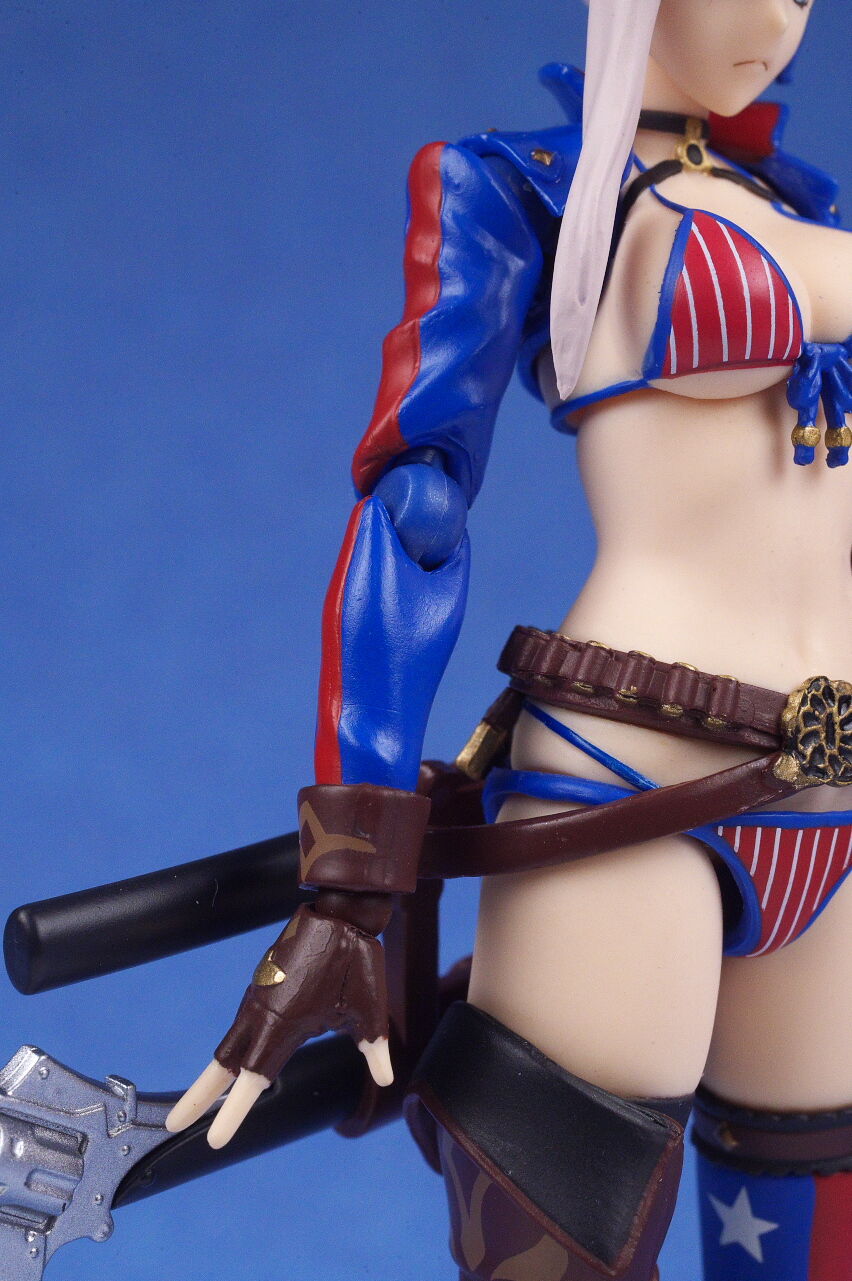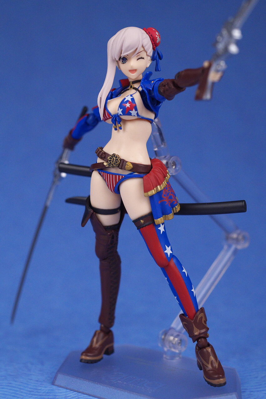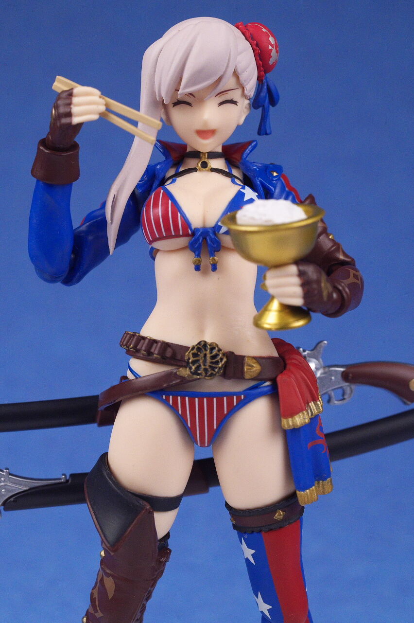 全身。通称水着武蔵の第二再臨姿。細身なプロポーションやアメリカテイストの衣装デザインなど忠実に再現。