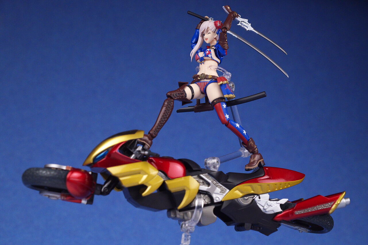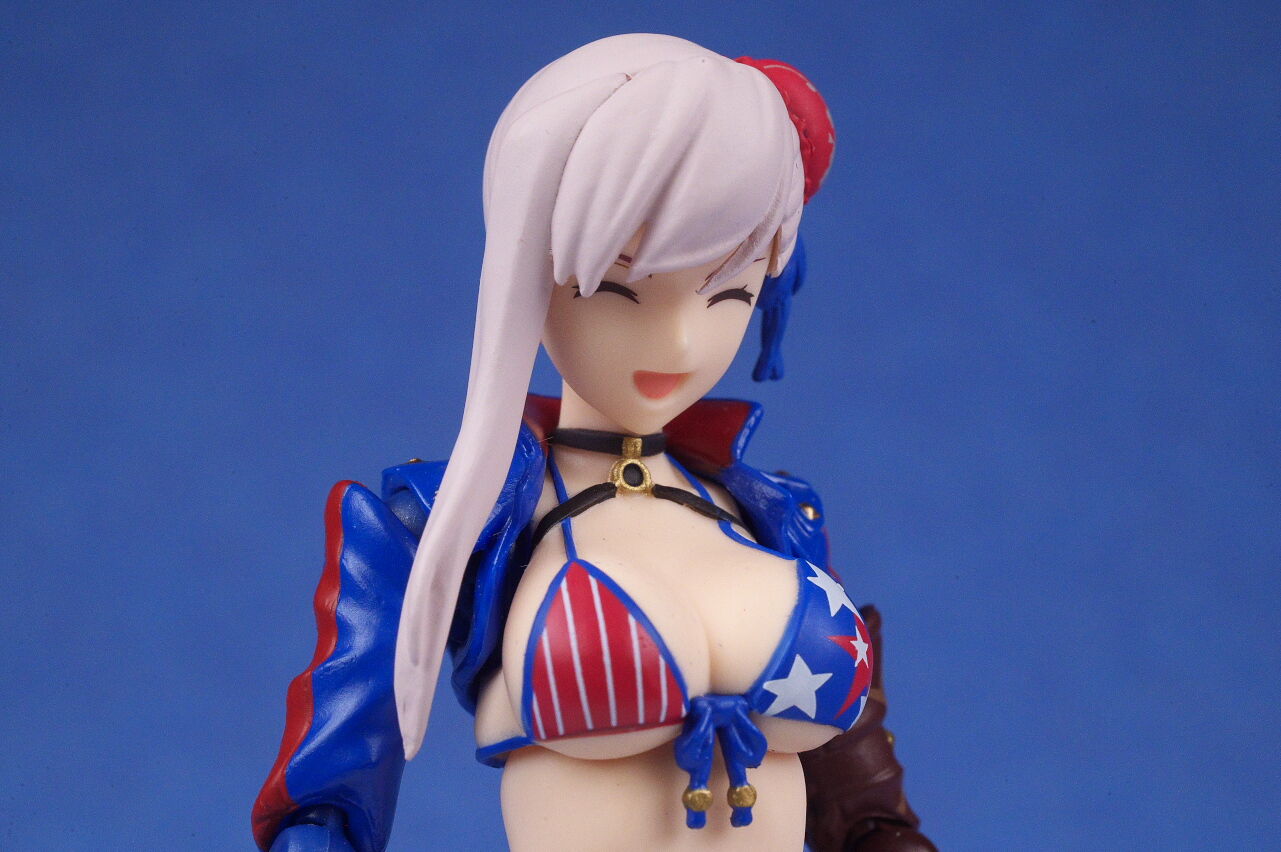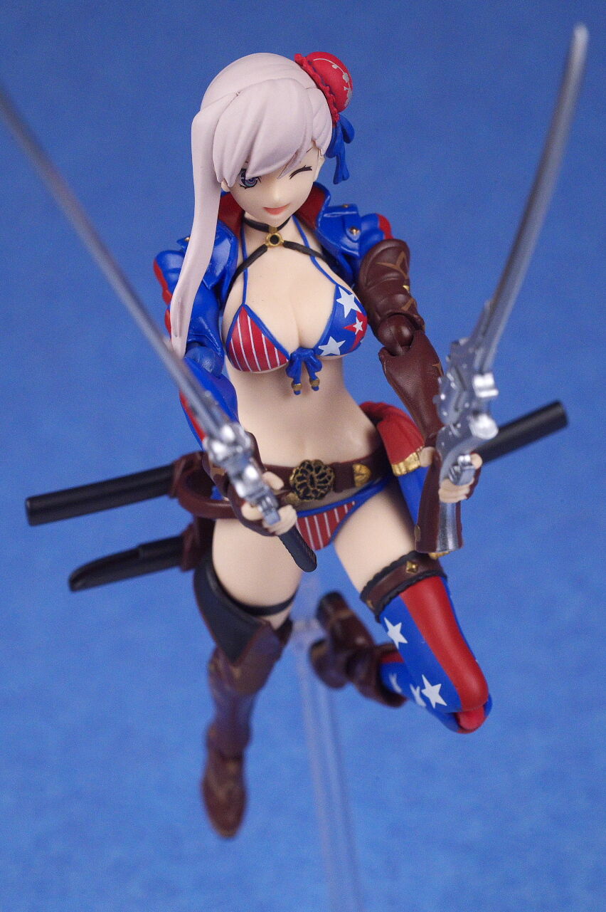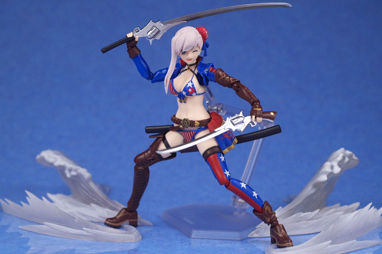 全身。通称水着武蔵の第二再臨姿。細身なプロポーションやアメリカテイストの衣装デザインなど忠実に再現。