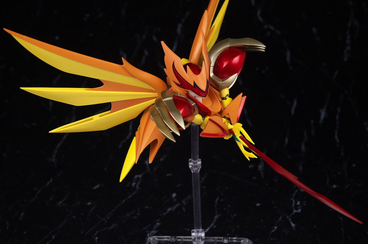 最近のネクスエッジワタルシリーズ同様プロポーションやシルエットなどはアニメのイメージそのまま、鳳凰をイメージしたカラーリングも違和感なく再現されており格好良く仕上がってました。