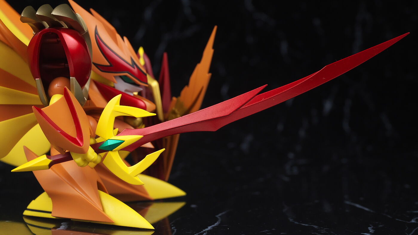 鳳凰登龍剣。長く鋭角的な刀身デザインを忠実に再現。赤はメタリック塗装。