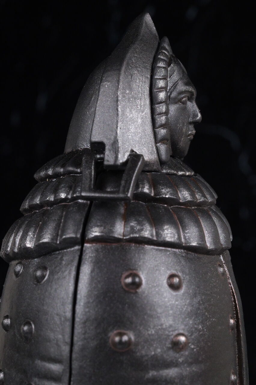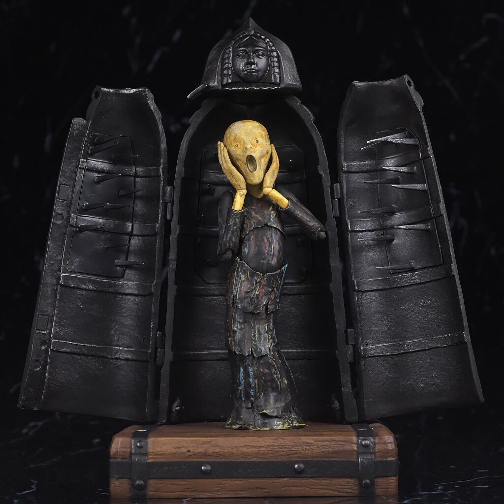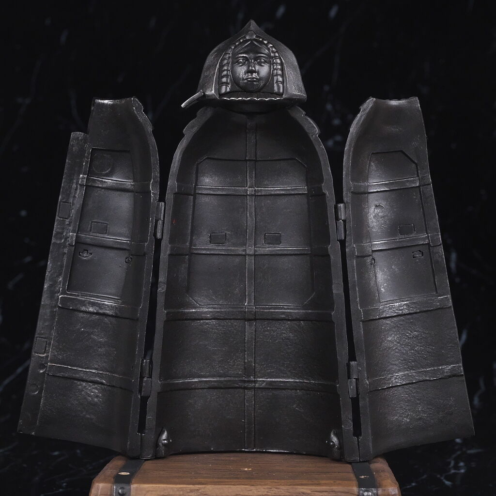顔。実物と同じように上部には人の顔が彫られており不気味な雰囲気を再現。