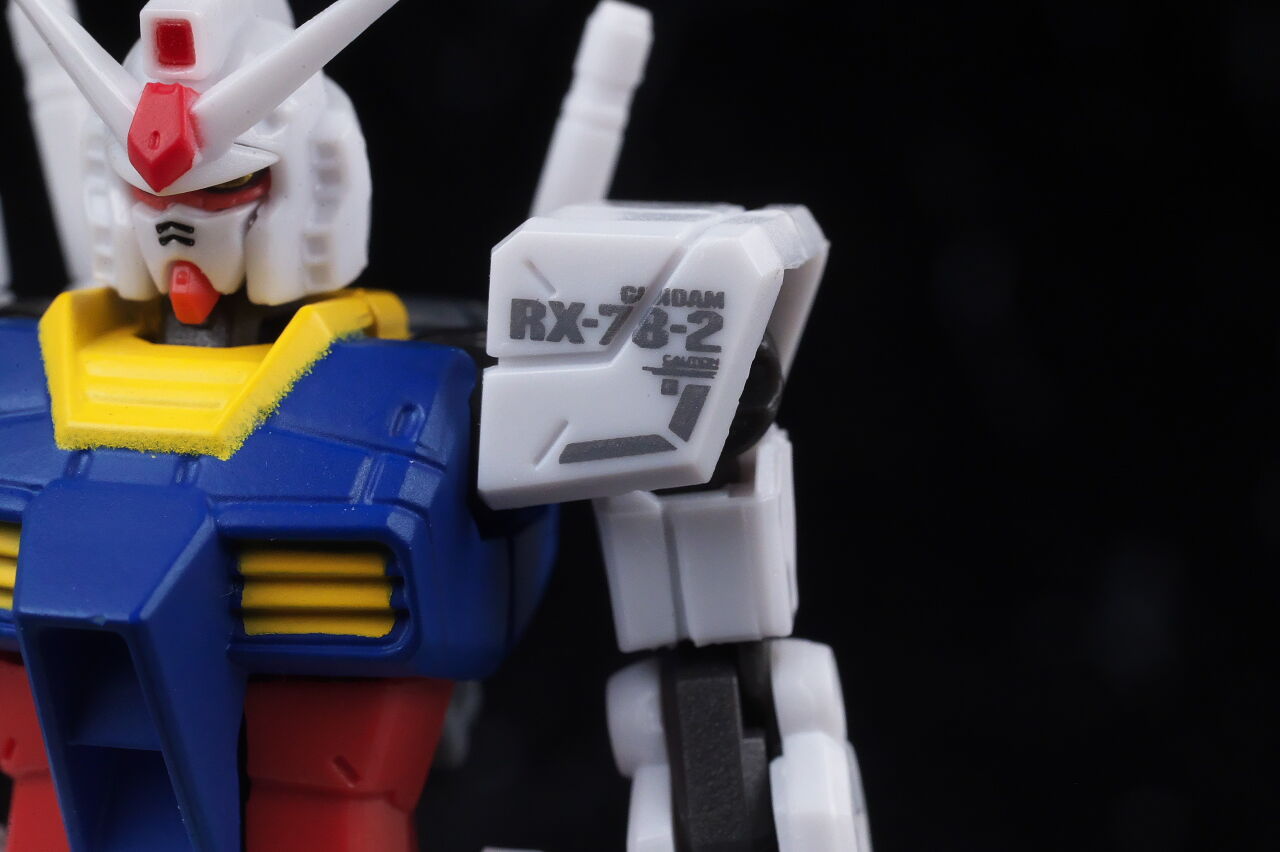 腕や足。この辺も適度にモールドが入ってて見栄え良好。全高約9cmという小ささながら肩にはマーキングまであり。