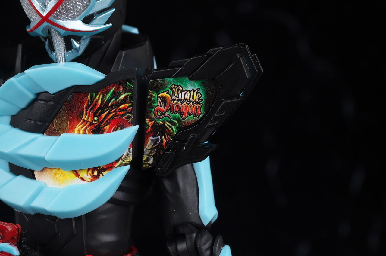 各部位など。全体的に骨が強調されたデザインになっており胸部には3本の爪。左胸にはブレイブドラゴンの絵がプリント。