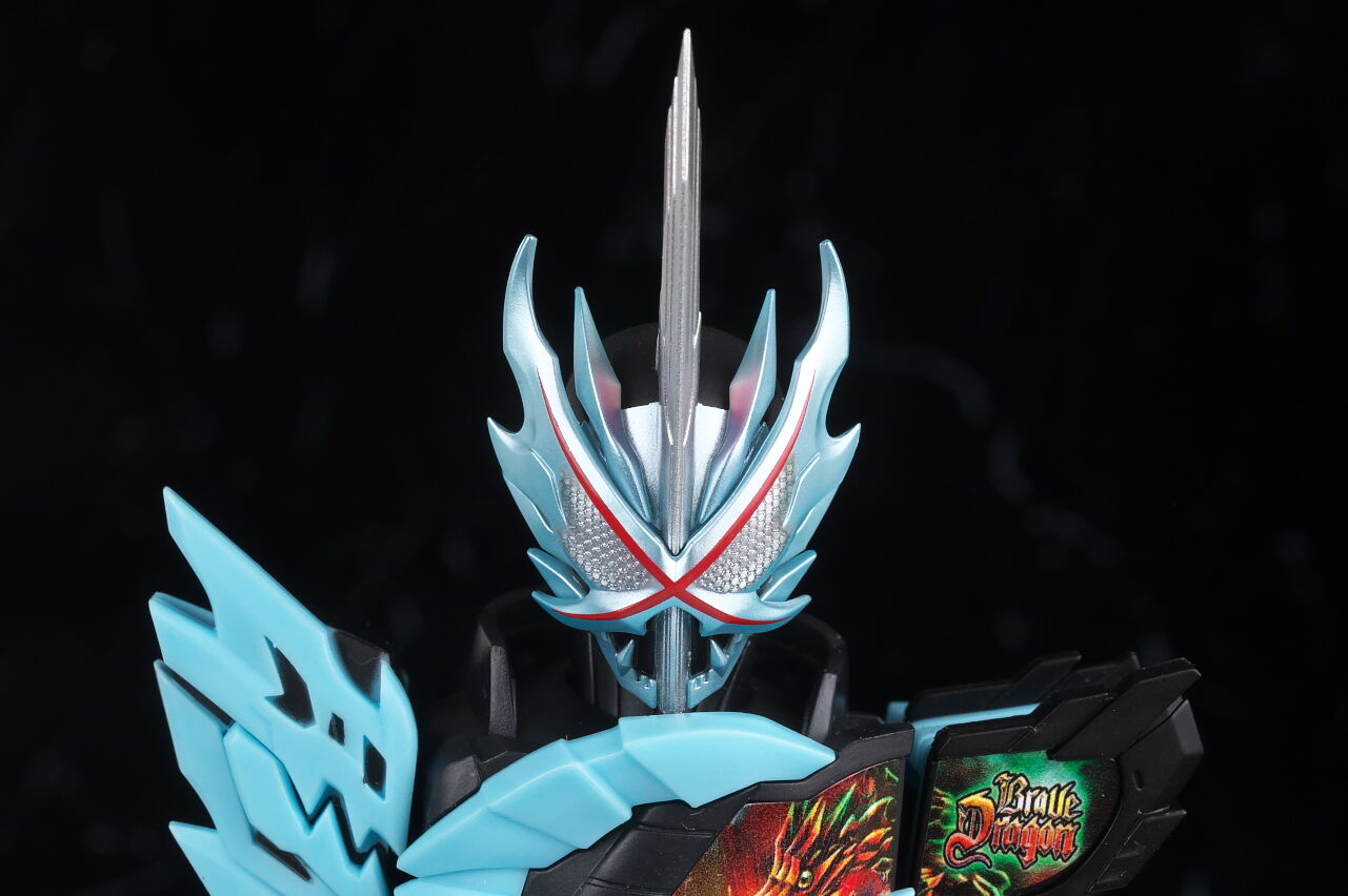 複眼に色が付いてないのが珍しい印象。塗装はこれまで通り丁寧で額から出た刀身の造形もシャープ。