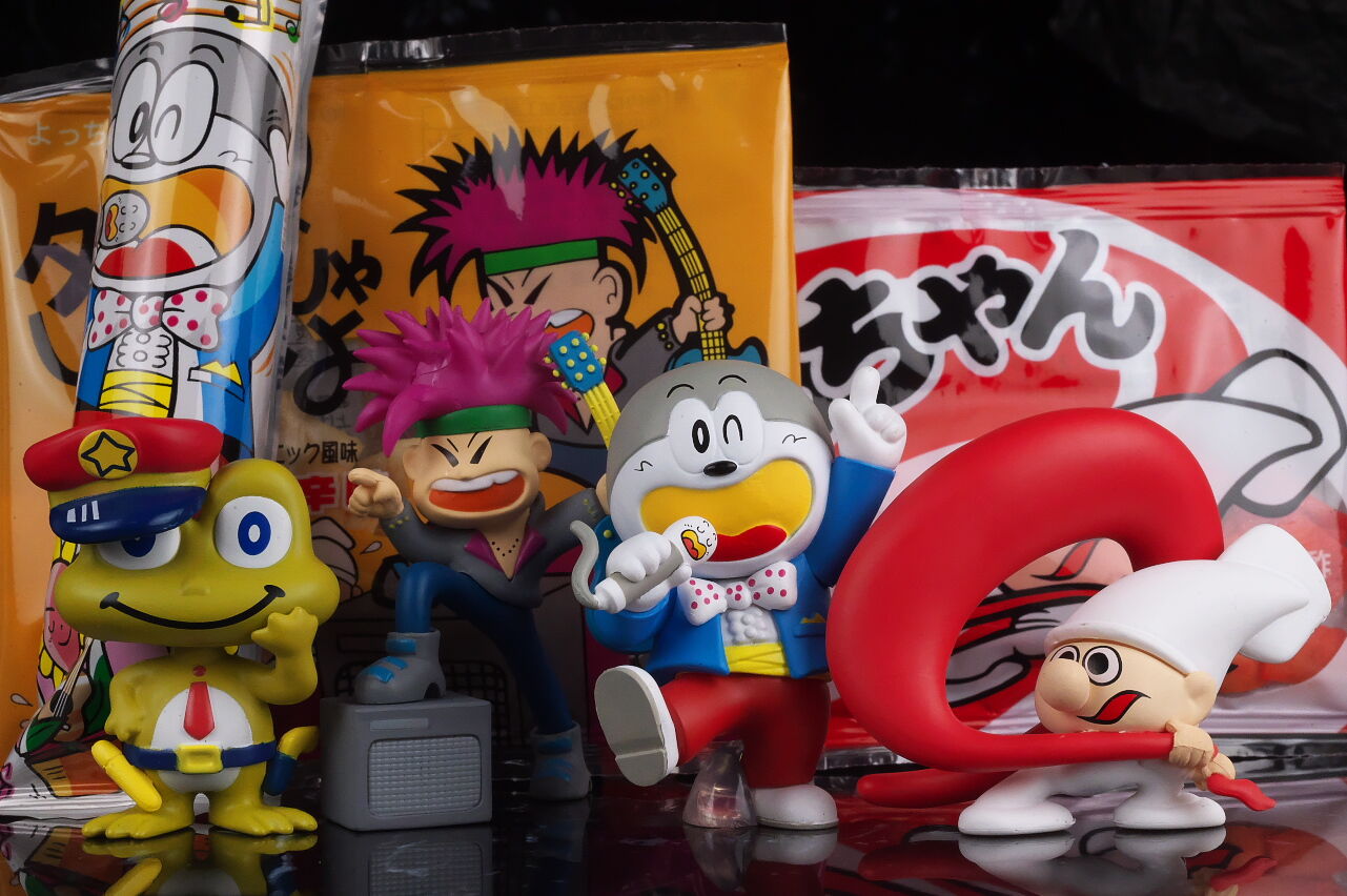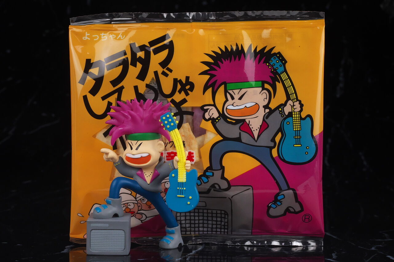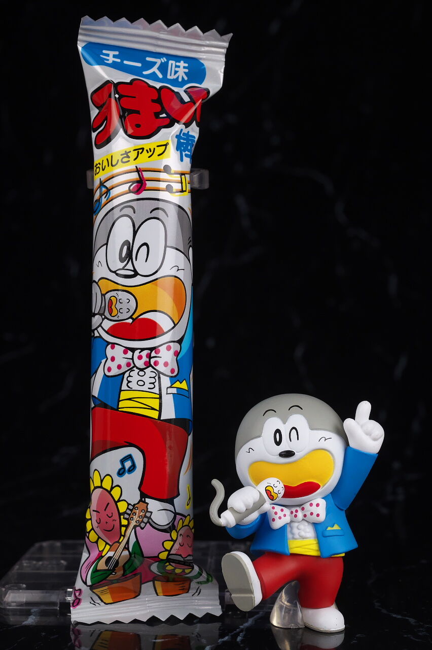 誰でも子供の頃から馴染みのある駄菓子のマスコットキャラをフィギュア化したという物ですが、ネタアイテム的な物ながら造形塗装のレベルは非常に高く、実際の駄菓子のイラストと比べてみると寸分違わぬレベルで驚きの出来に仕上がってました。