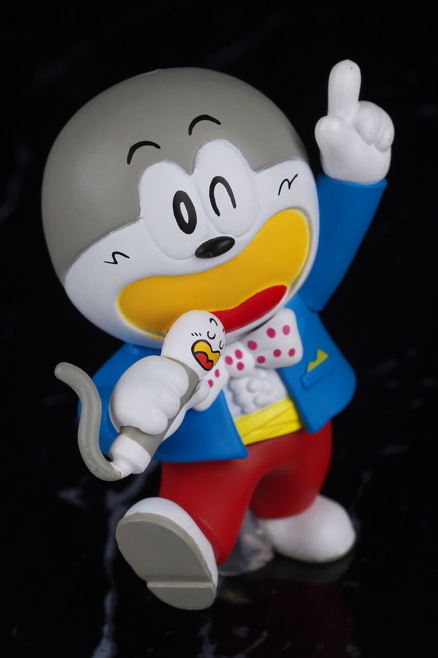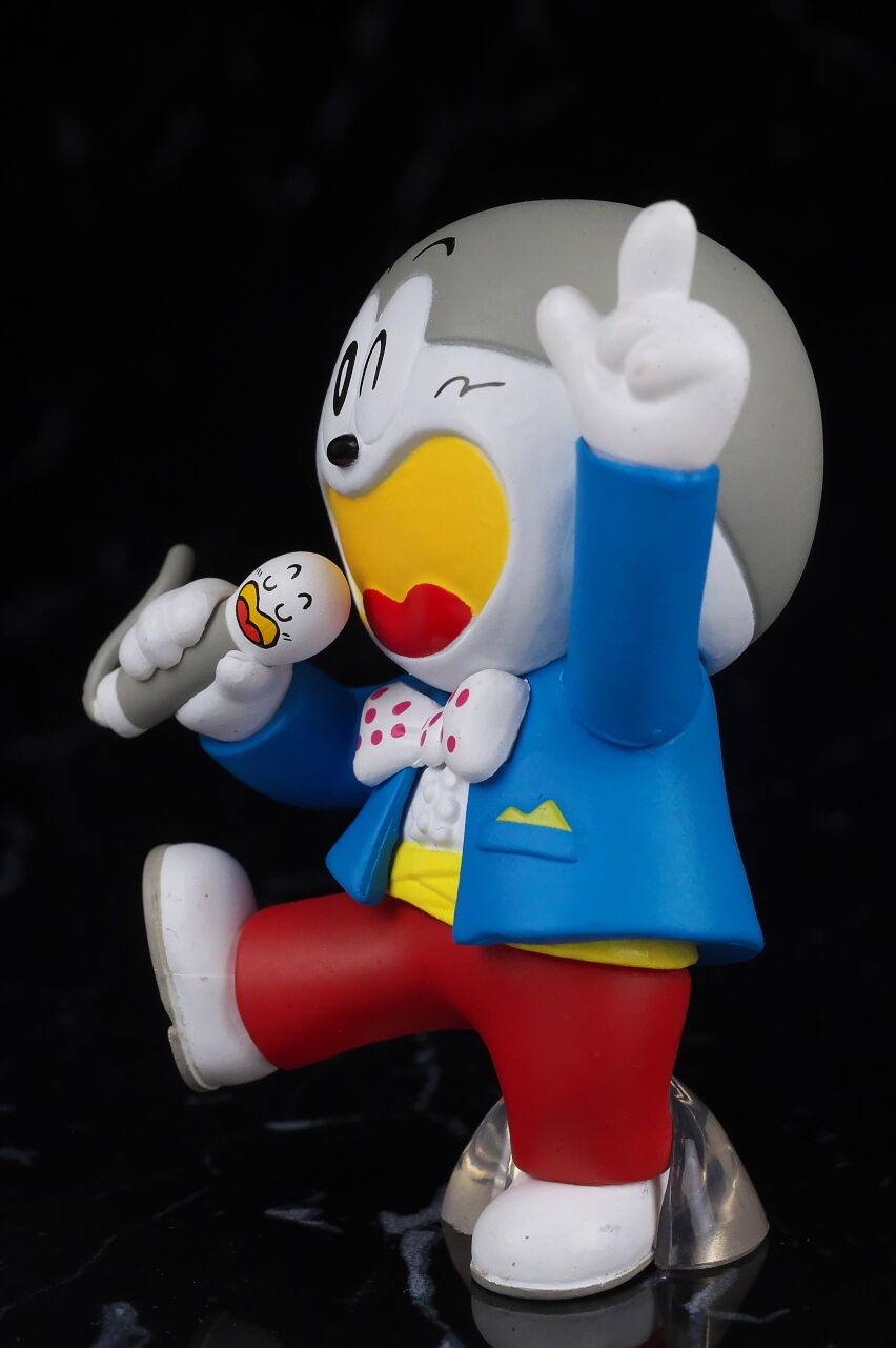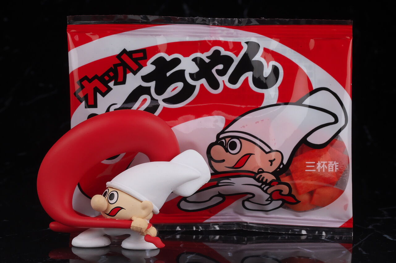 誰でも子供の頃から馴染みのある駄菓子のマスコットキャラをフィギュア化したという物ですが、ネタアイテム的な物ながら造形塗装のレベルは非常に高く、実際の駄菓子のイラストと比べてみると寸分違わぬレベルで驚きの出来に仕上がってました。