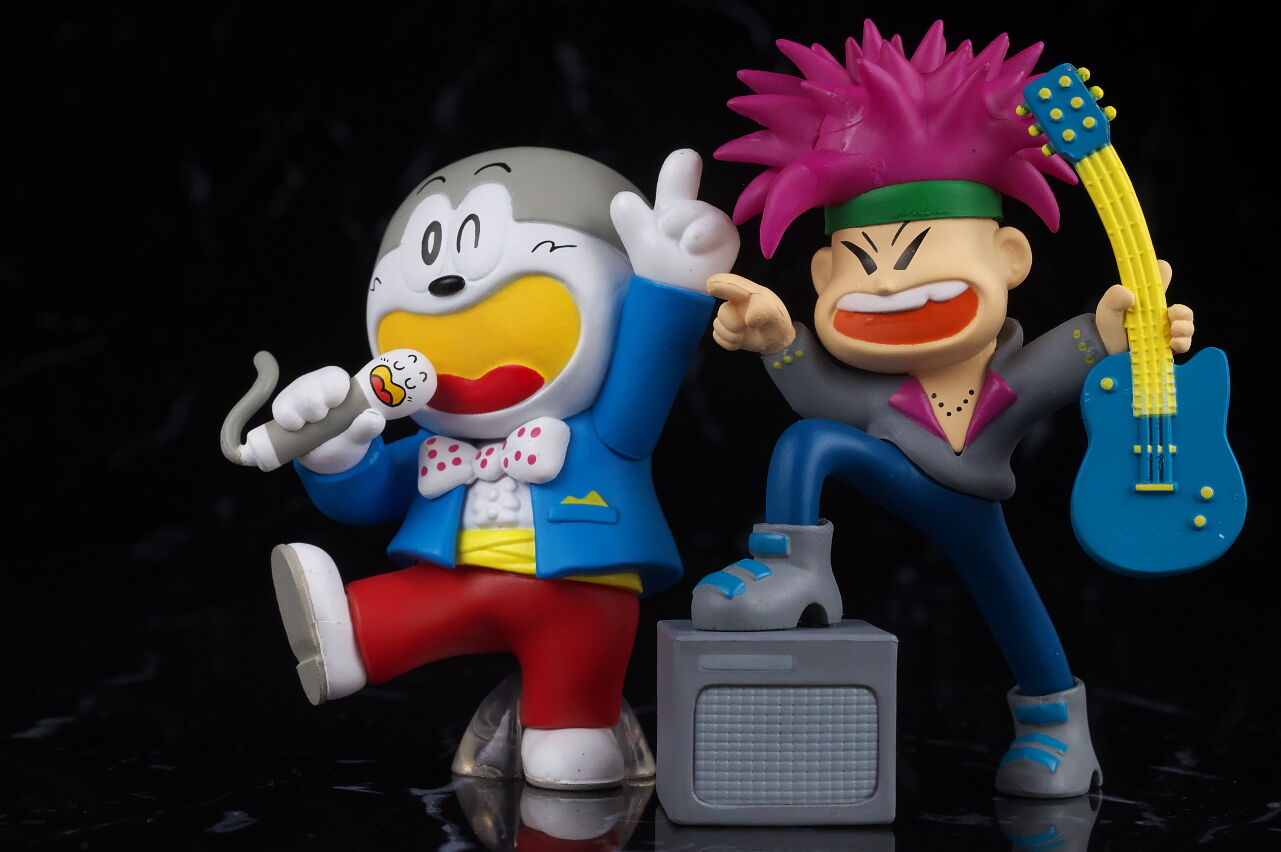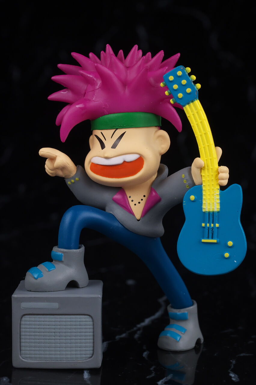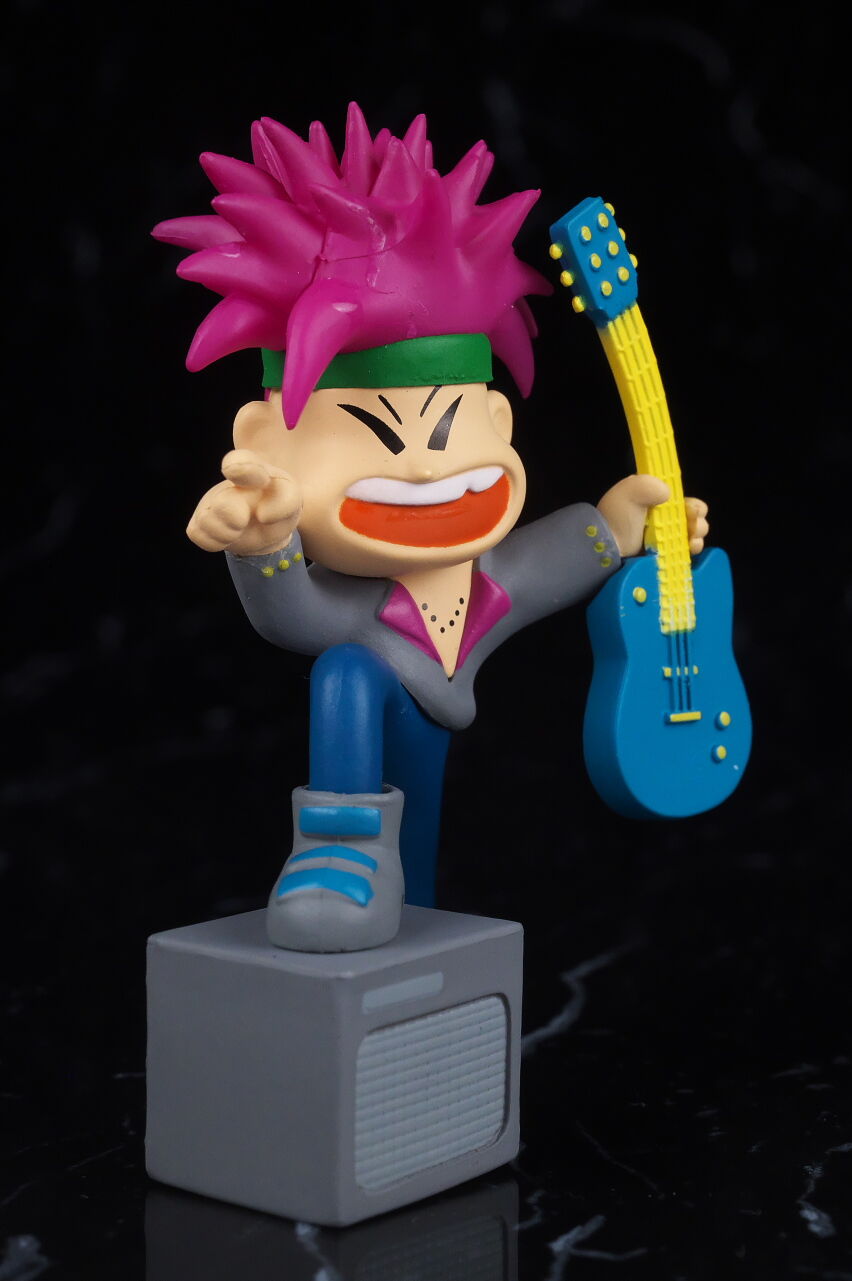 本物と。ギターはカプセルに入ってたせいで曲がってるのかと思いましたが元イラスト通りでした。