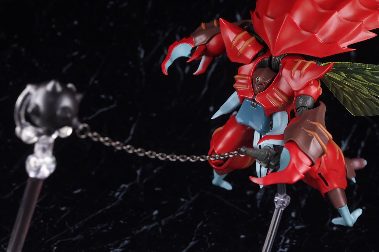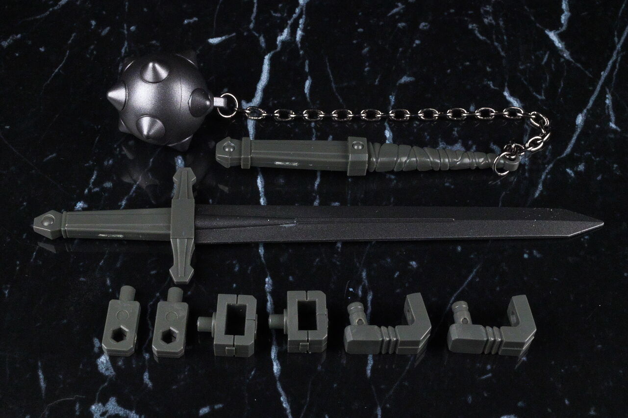 可動はデザイン的に頭部周りと膝だけいまいちでしたが、他は良好で、武器も珍しいモーニングスターが付いてるなど内容的にも面白く、遊びの面での不満も無かったです。