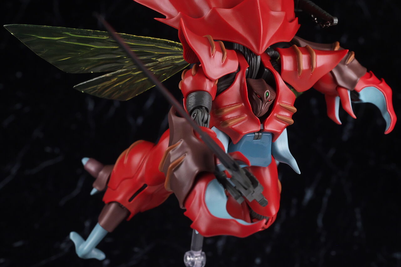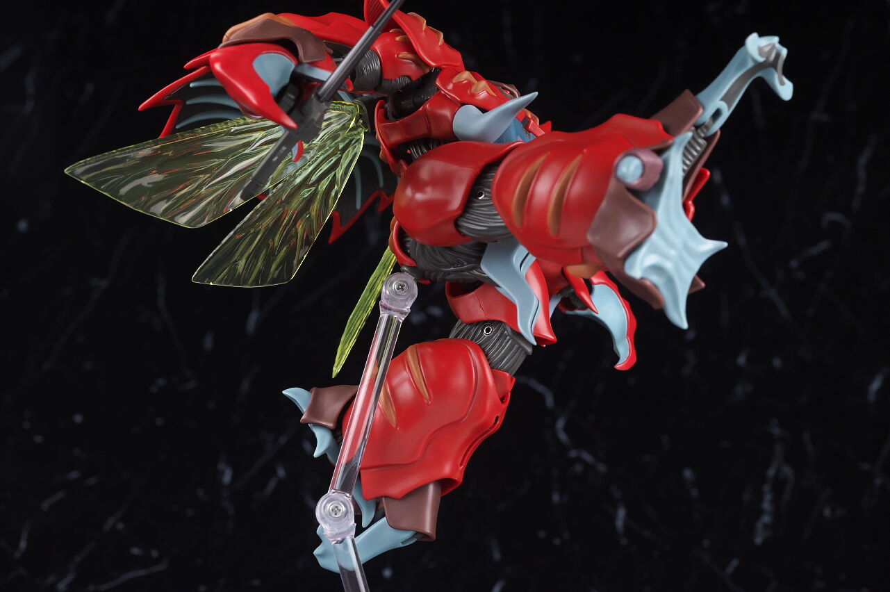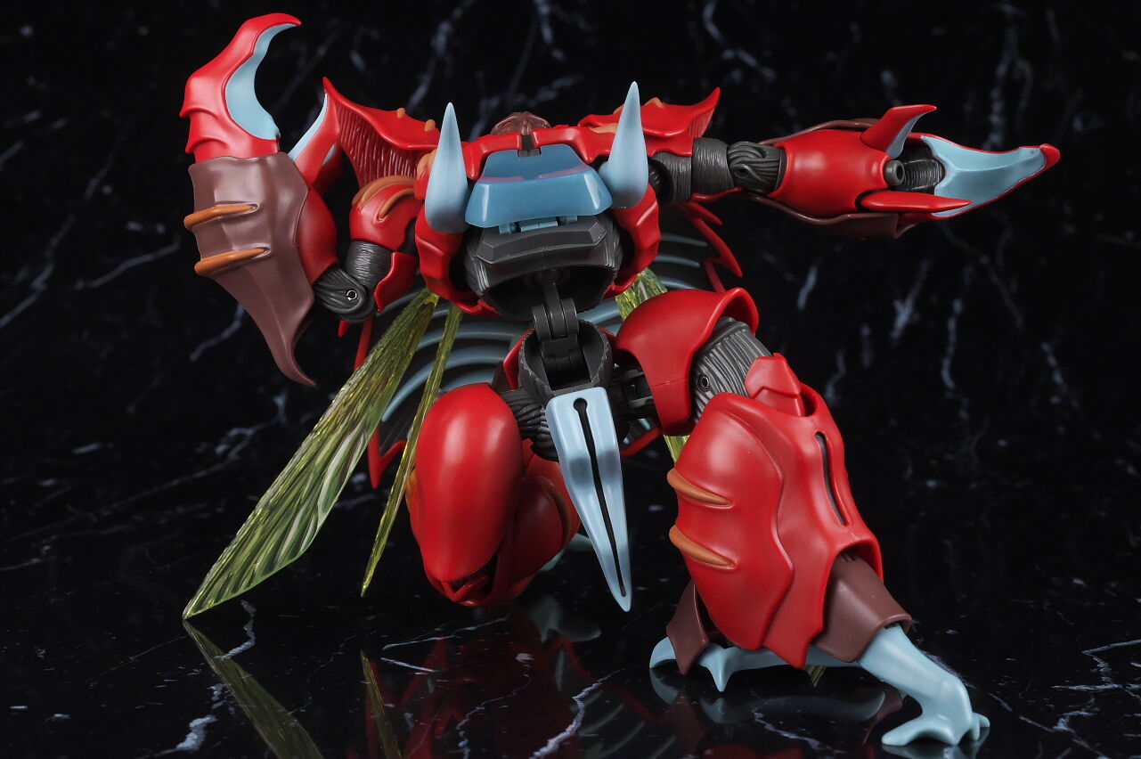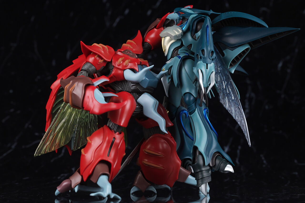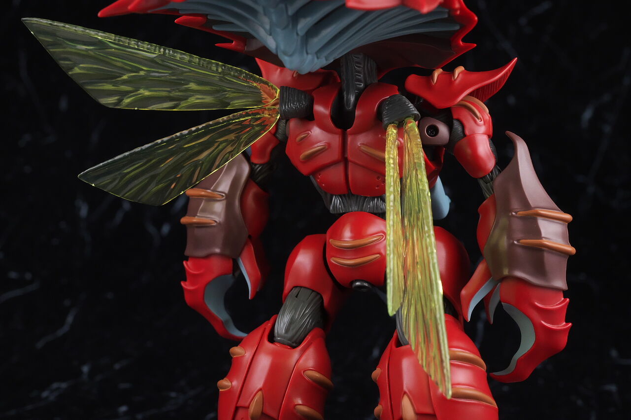 これまでのオーラファンタズム機体と同じく生物感の強いデザインが忠実に再現されており、各部ディテールも精密、サイズもドラムロより一回り大きく迫力もあって、非常に格好良く仕上がってました。