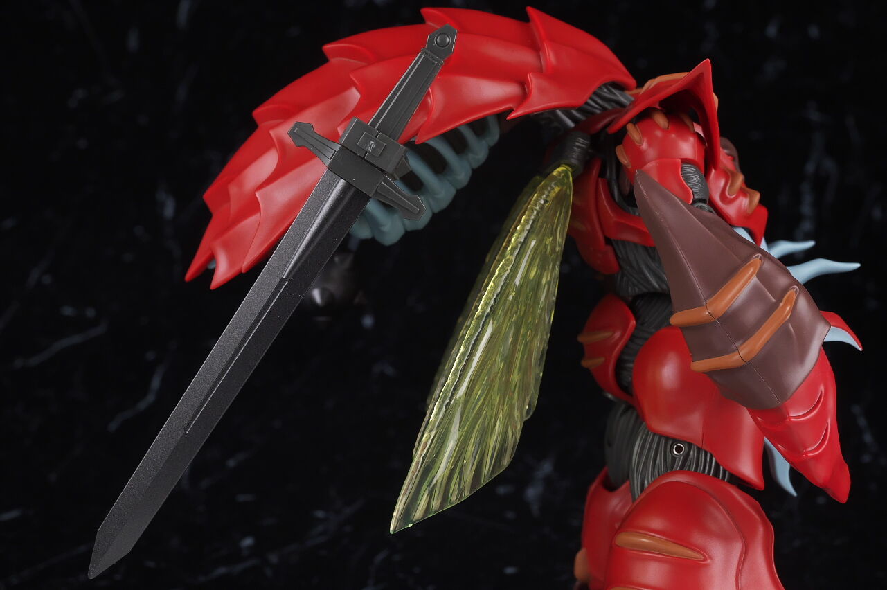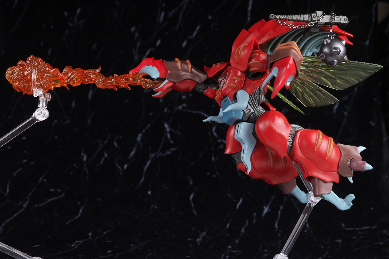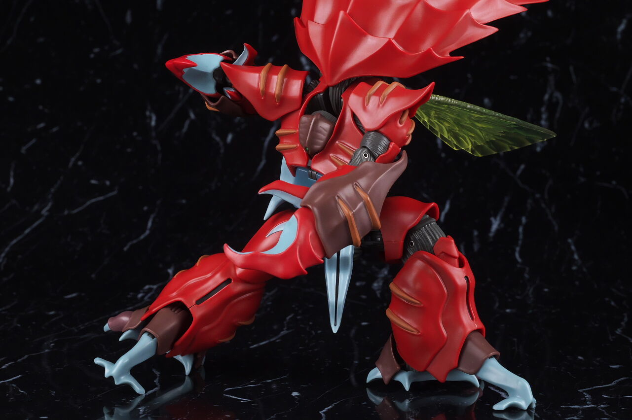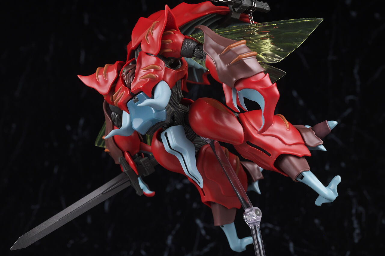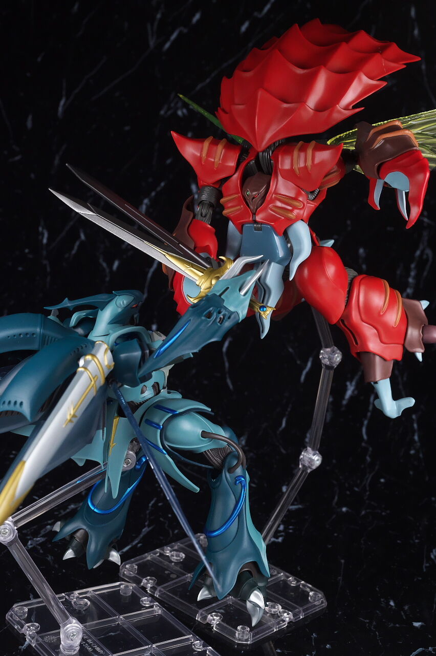 これまでのオーラファンタズム機体と同じく生物感の強いデザインが忠実に再現されており、各部ディテールも精密、サイズもドラムロより一回り大きく迫力もあって、非常に格好良く仕上がってました。