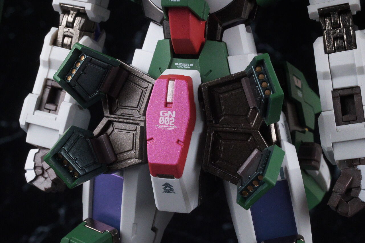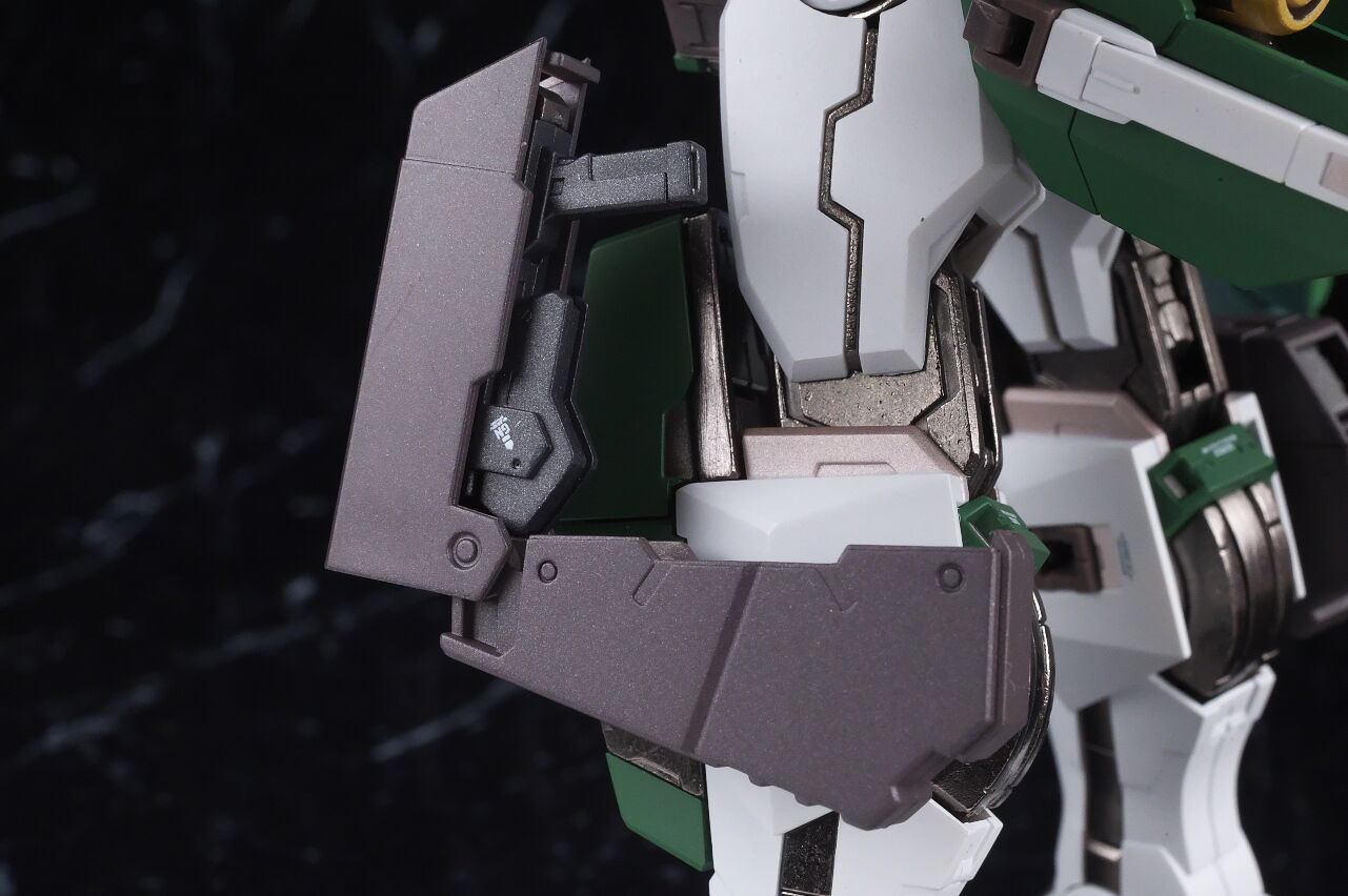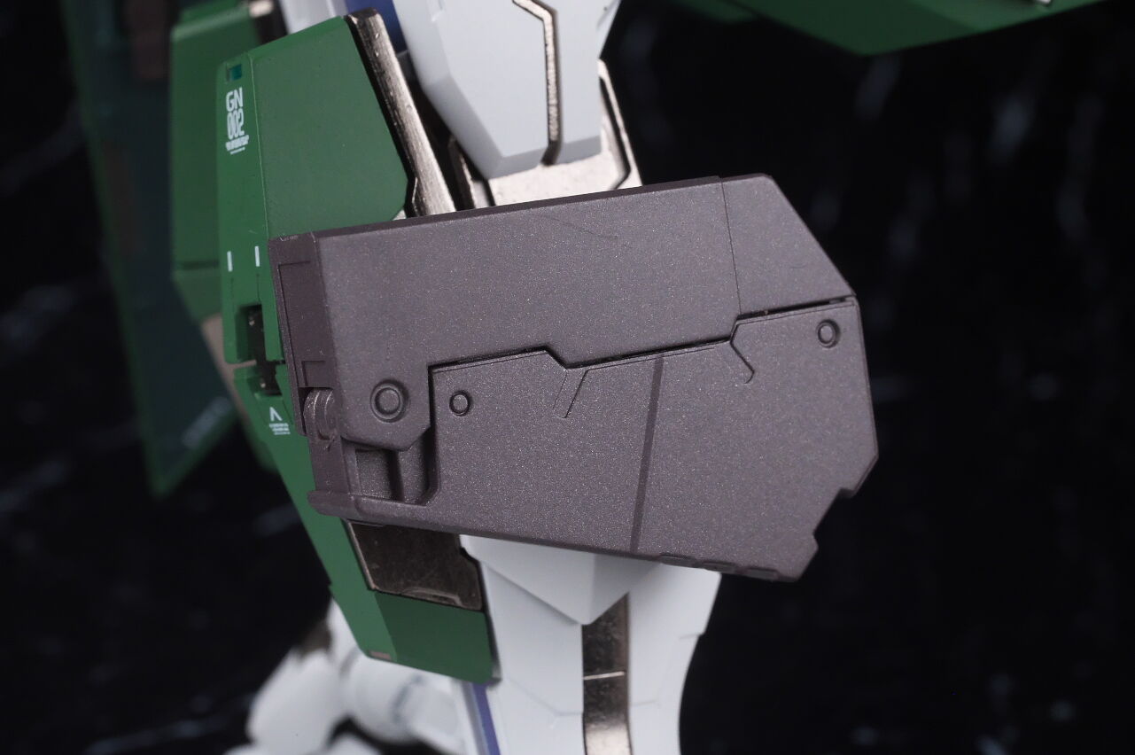 腰回り。こちらは新規造形でGNミサイル内蔵のフロントアーマーに変化。
