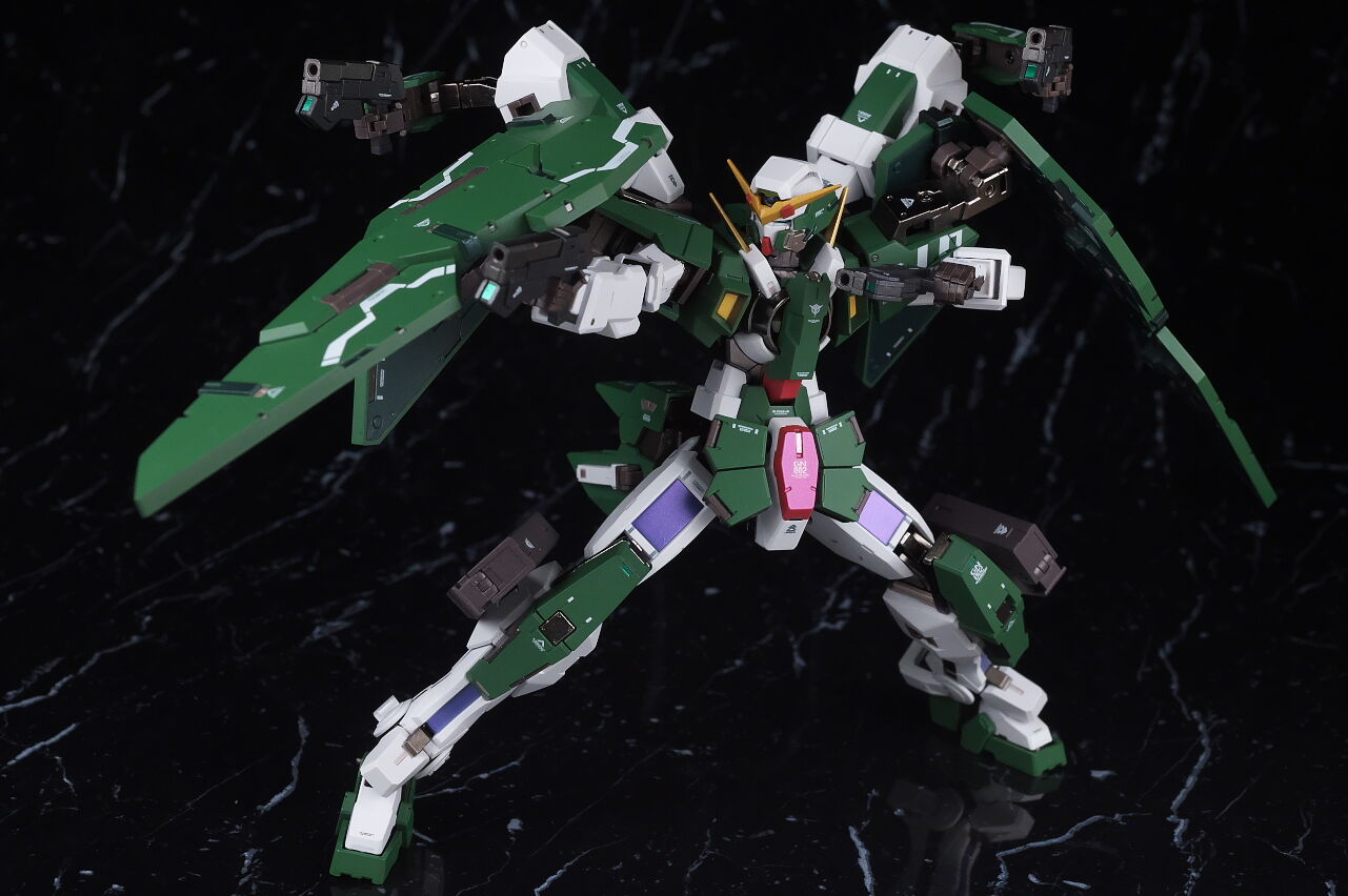 大部分はリペアIIIの流用ですが、カラーリングや武装は全く違うので新鮮味があり、メタルビルドらしい安定した造形塗装で見た目も完璧、リペアIIIよりもやはりアニメで活躍したノーマルデュナメスの方が思い入れもあるので満足度の高い内容でした。