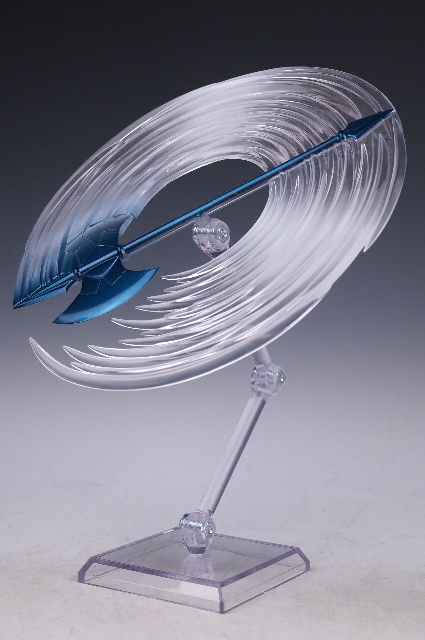 ミョルニル・ハンマー用エフェクトパーツ。こちらは専用の台座を使って浮かせて展示。