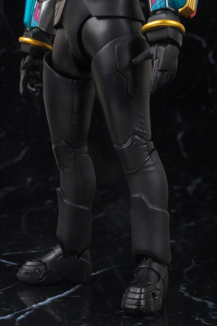 腕や足。手足も男性ライダーより短め。また腕部は派手ですが、脚部は何の装飾も無く真っ黒。