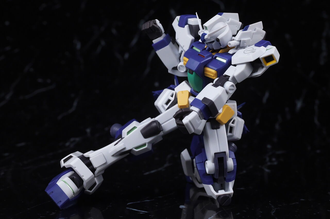 可動はGP04と同じく股関節が癖のある作りになってて足を大きく開けないので、そこだけストレスでしたが、他の部分は概ね良く、武器の展開や差し替えによるコア・ブースターの再現などギミックも凝ってて遊びの面に関してもまずまず良かったです。