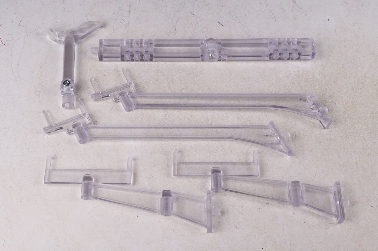 台座は専用の物が付属。翼もピンではなく下から支えるように固定。接続部は3段階高さ調節可能で先端は軸可動。支柱中央も曲げることが可能。