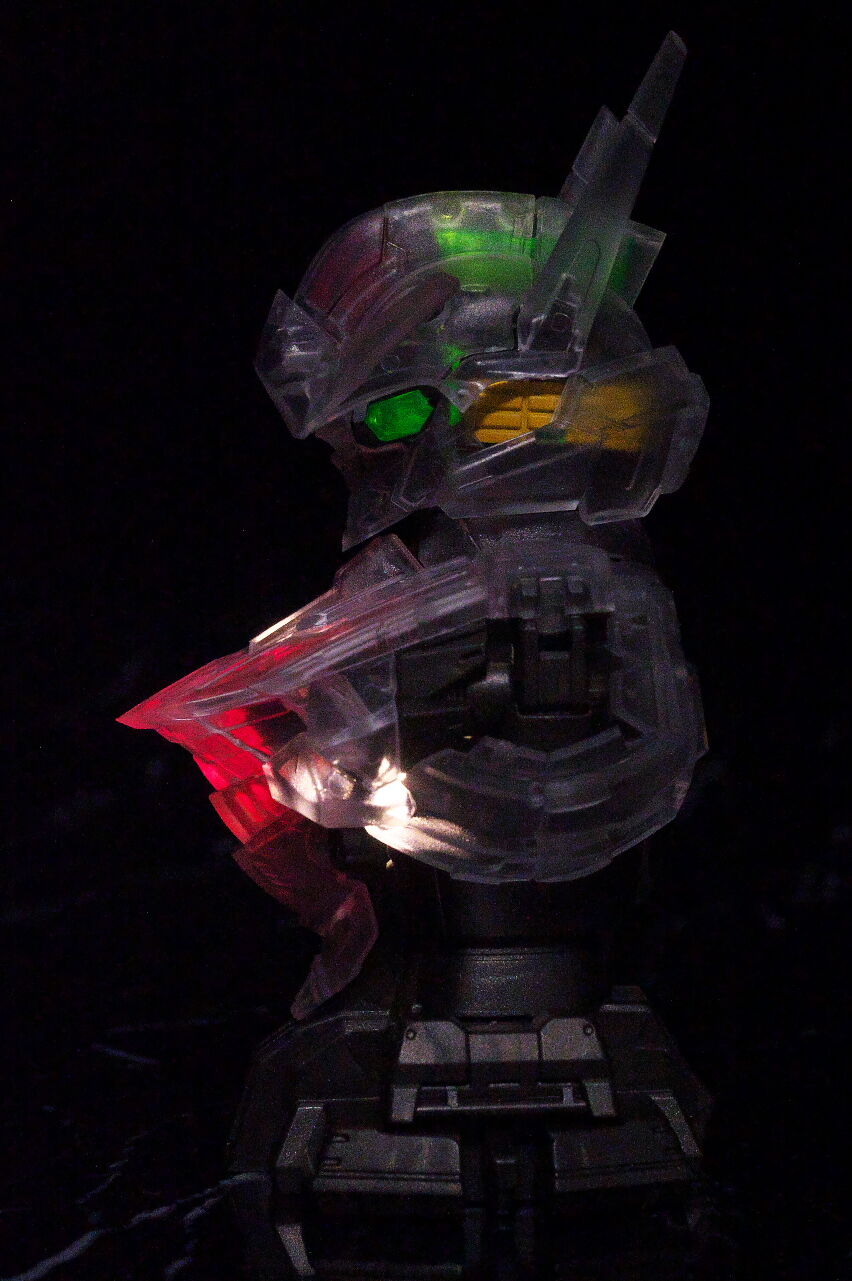 頭と胸両方光らせた状態。胸は中央が一番光る構造になってて左右の光量がやや弱い点はちょっと残念でした。