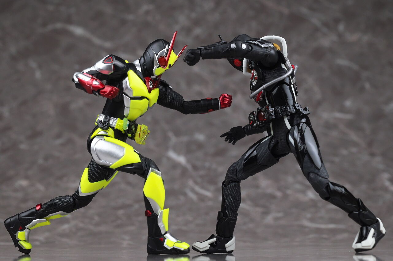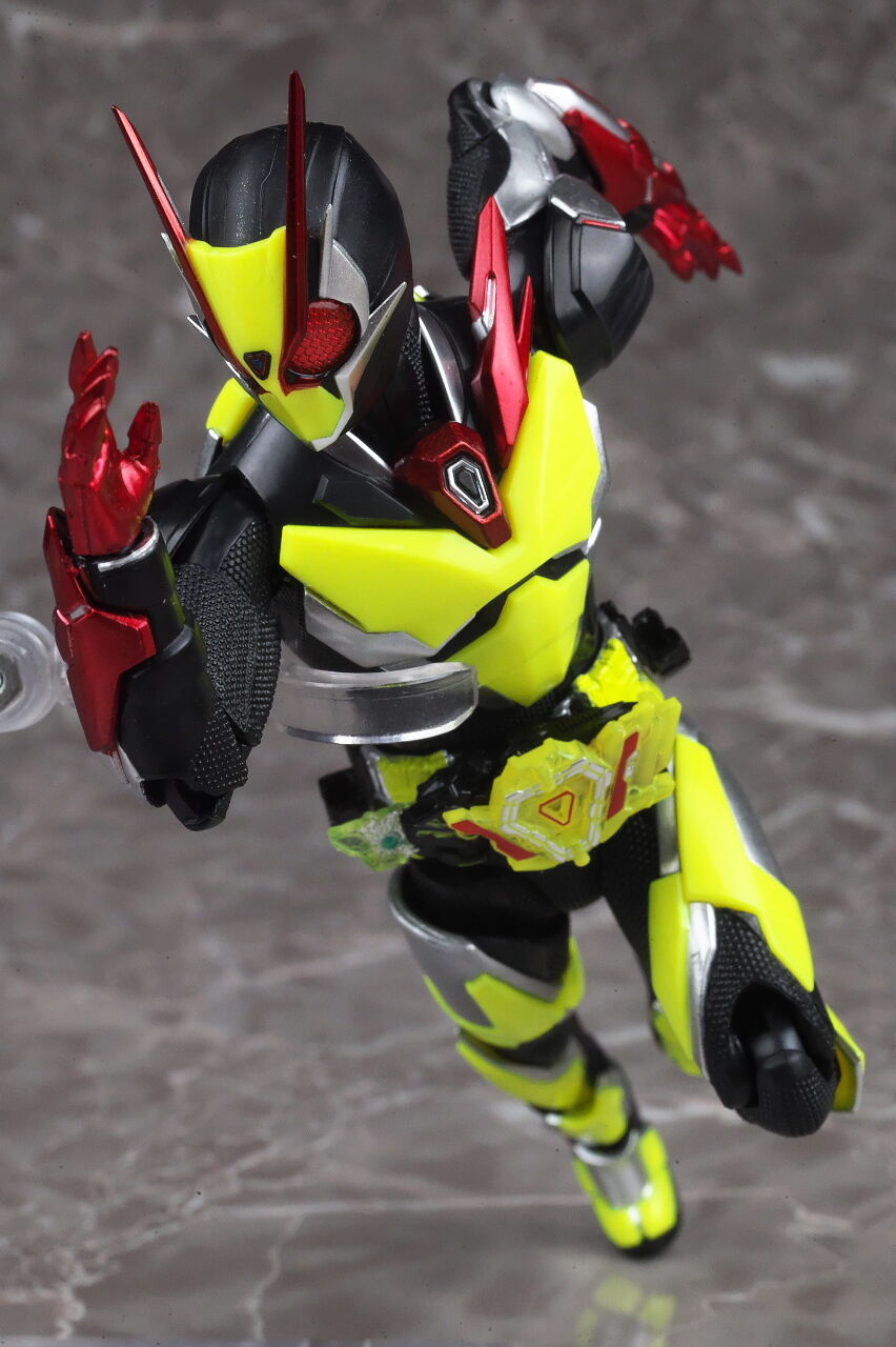 出来の方はプロポーションやフォルムなどこれまで通り劇中のイメージ通りで、複雑になった頭部などの塗装も正確、可動も他のゼロワン系と同じく良好で、安定した出来に仕上がってました。