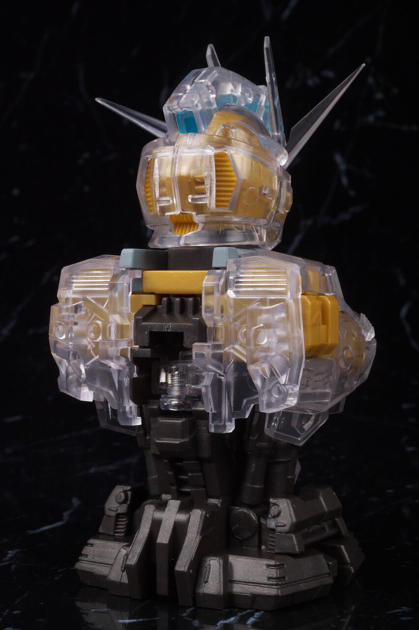 金フレームの色が見本に比べて安っぽい点だけ惜しかったものの、カラー外装と内部メカを組み合わせた完全体状態ならそれほど気にならず、アニメのイメージに近いシャープな造形で今回も格好良く仕上がってました。