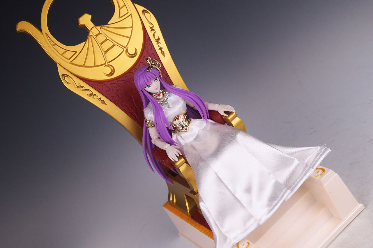 聖衣無し状態から。玉座は髪が上手く収納出来る作りになってるので、無理なく座らせることが出来見栄えも良かったです。