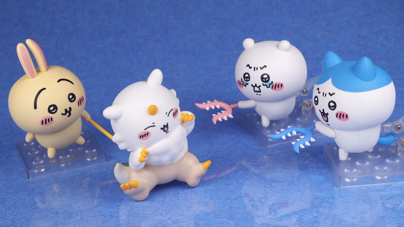 ちいかわ、ハチワレ同様手足はマグネットなので遊びやすく、討伐棒にエフェクト付きの腕パーツなどオプションも面白く、3体並べるとやはり華やかさもぐっと上がる感じで満足度は高かったです。