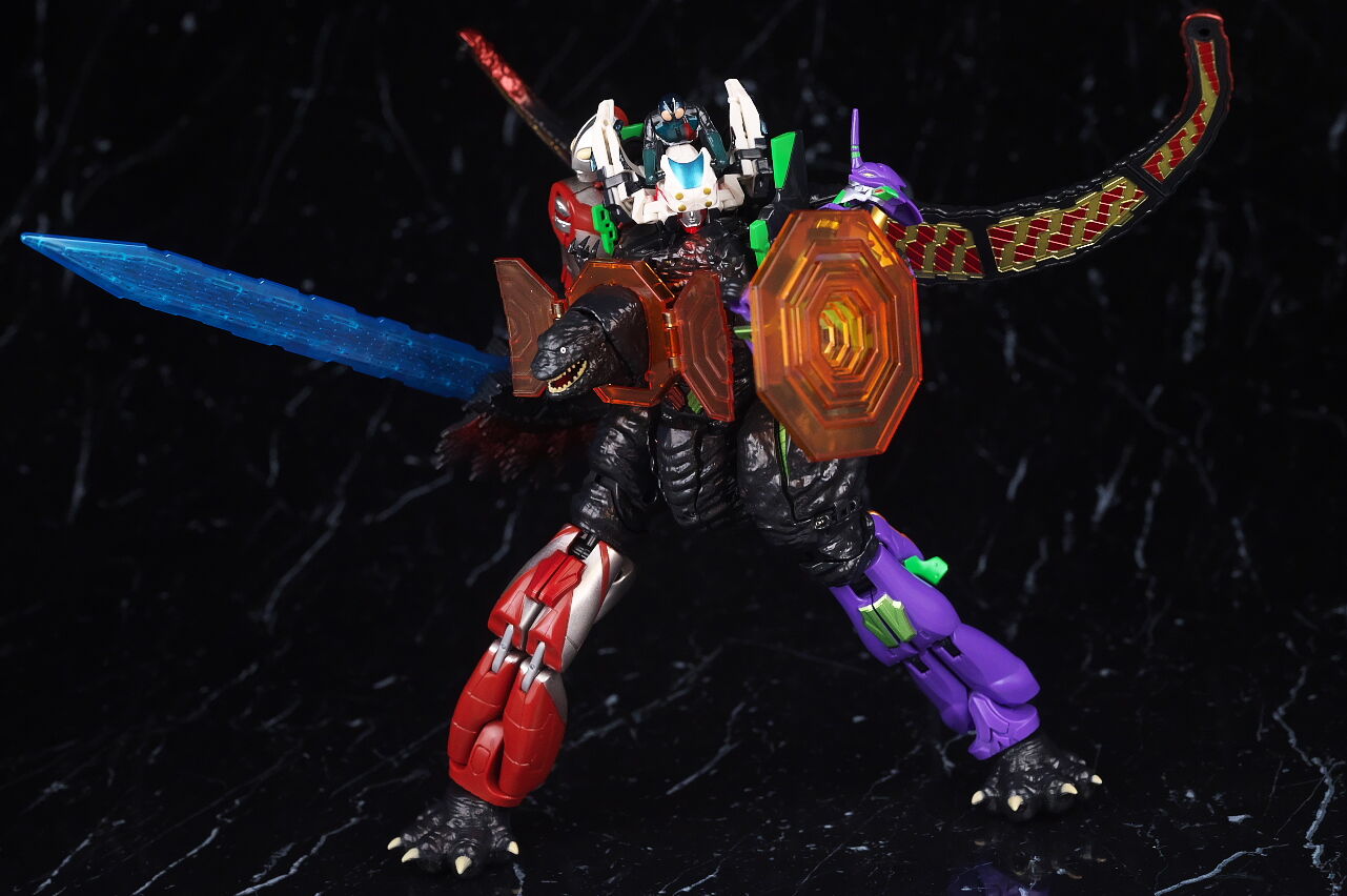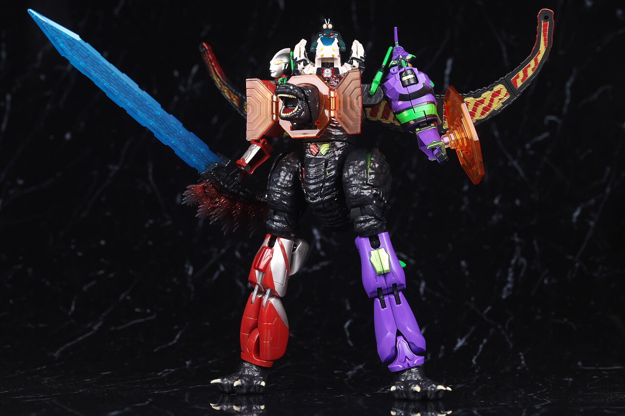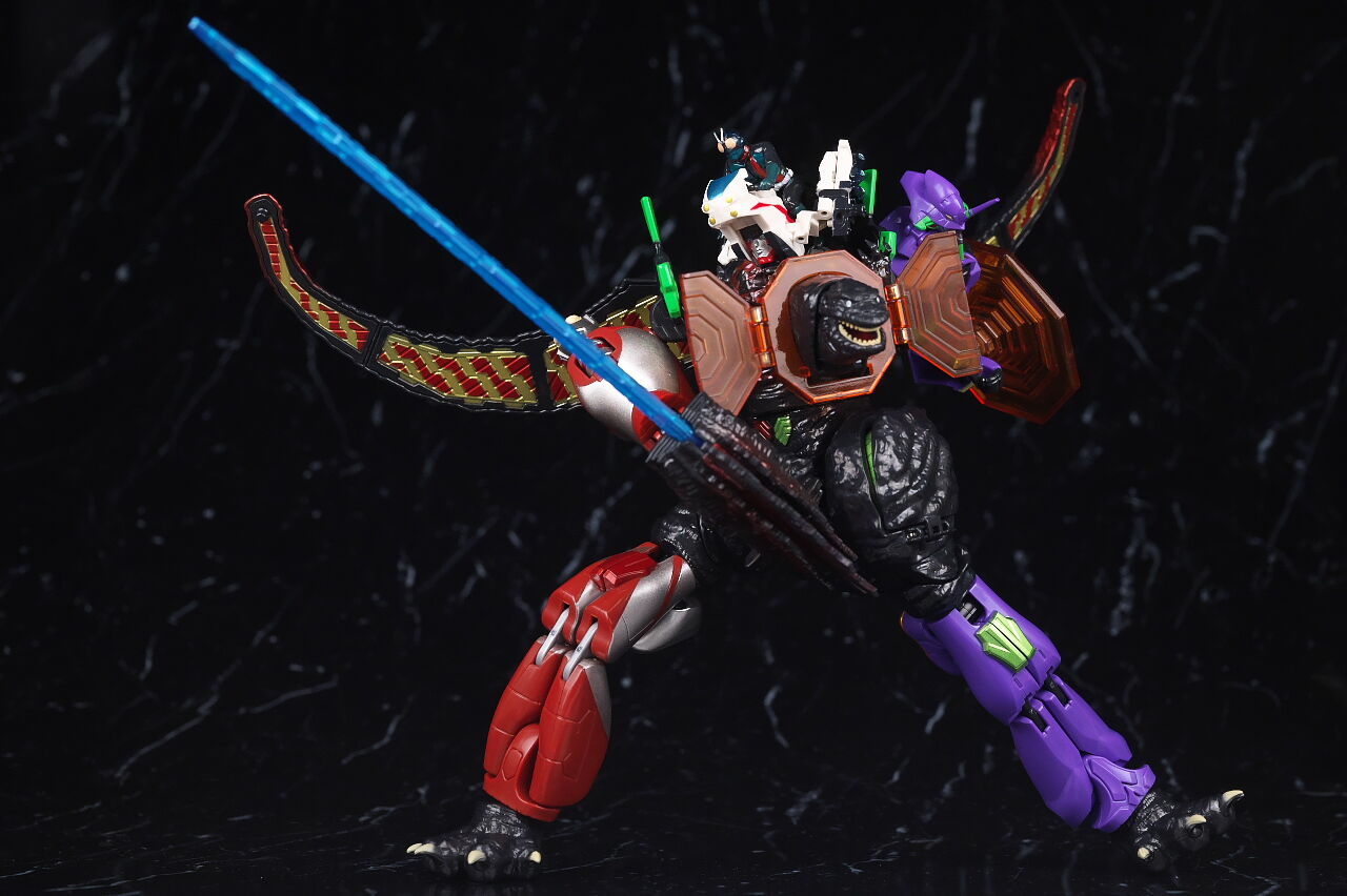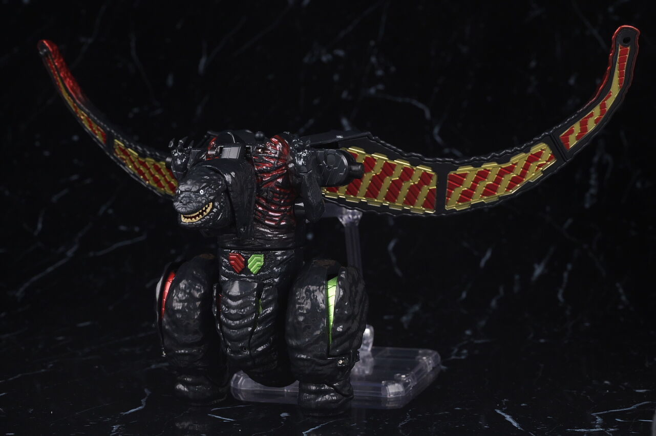 ゴジラ。合体ロボになる性質上、肩など少しおかしい部分はありますが、プロポーションやフォルムはまだ原型を保ててる造形。